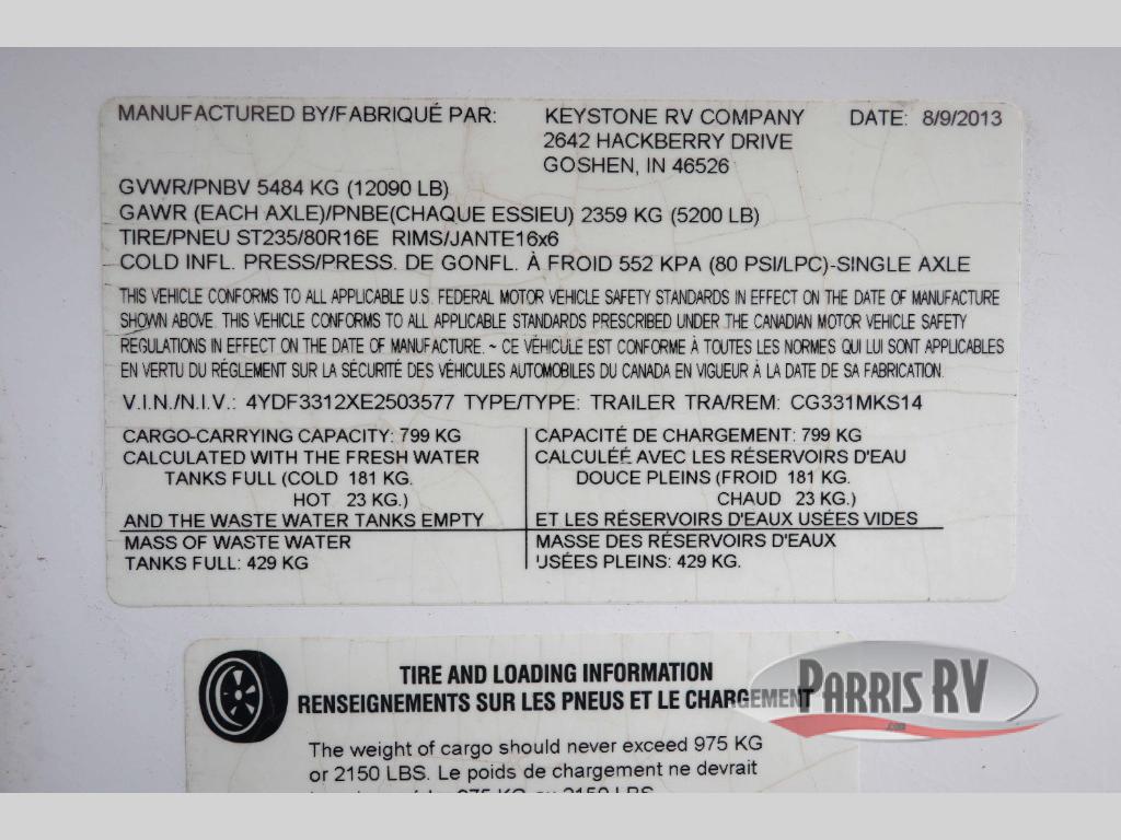 Used 2014 Keystone RV Cougar 331MKSWE