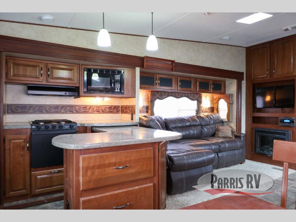 Looking for a fifth wheel unit with a rear kitchen, then check out this Cougar 331MKSWE. If offers a spacious interior with triple slides throughout. The kitchen is tucked away in back providing an awesome workspace which leaves a lot of room in the center of the model for a gathering place to enjoy conversation and TV.