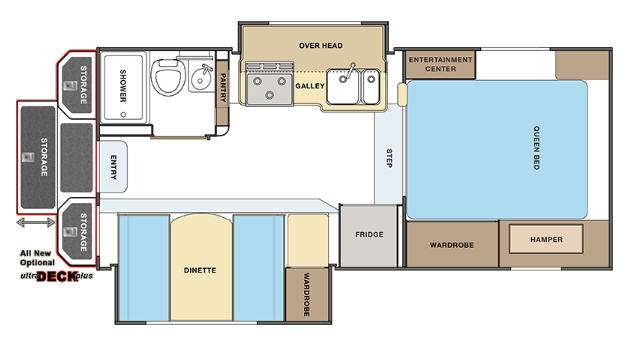 The Lance 1052 truck camper is the shortest double slide, dry bath model on the market. It also features an all new optional rear ultra storage deck plus which provides three additional storage compartments, besides the extendable deck, that you will absolutely love.