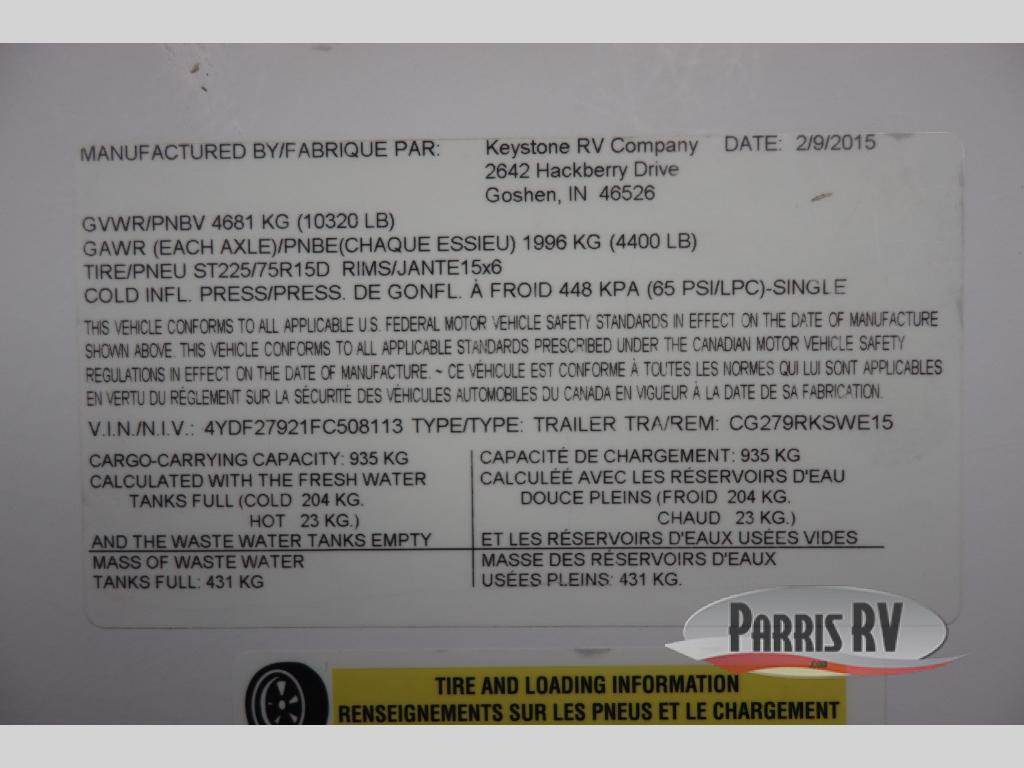Used 2015 Keystone RV Cougar Half-Ton Series 279RKSWE