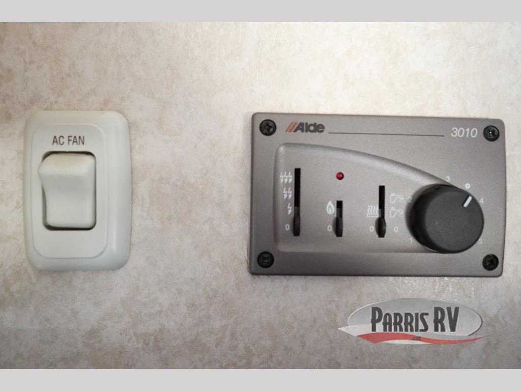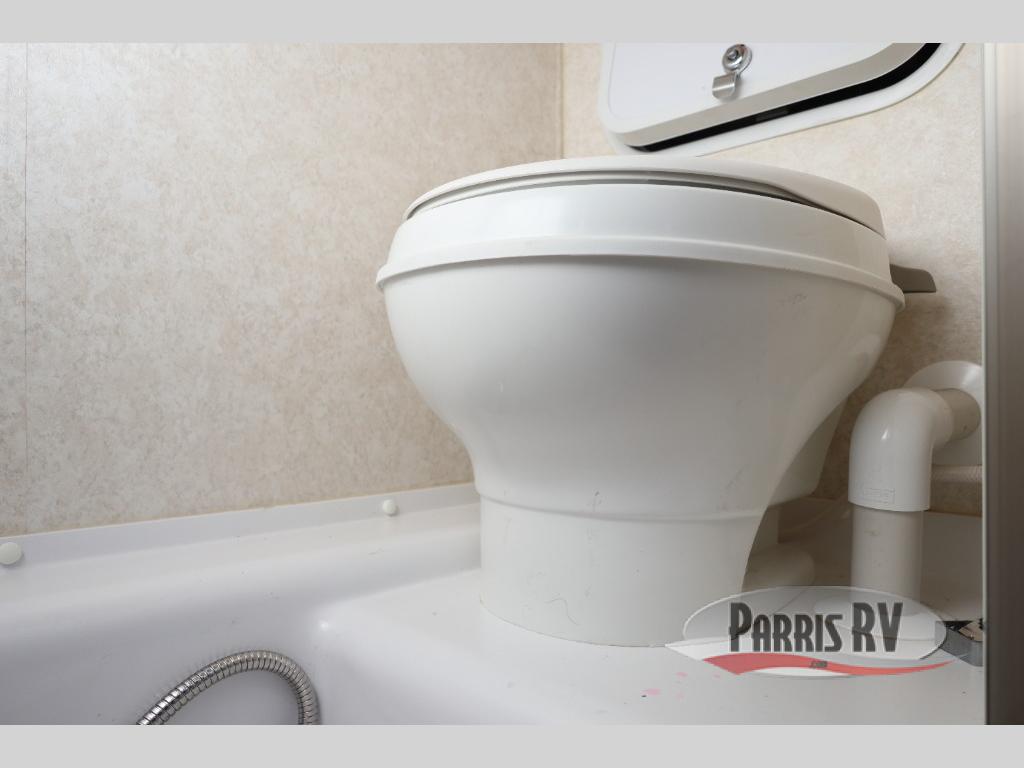 The front corner features the convenient wet bath that includes a shower and sink. You will have no trouble finding hot water as this unit features the Alde 110 volt instant hot water system. There is also a cassette porta-potty which is great for nighttime use.