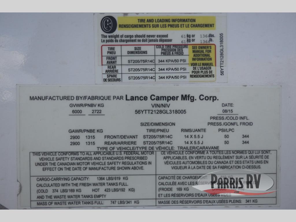 Used 2016 Lance Lance Travel Trailers 2185