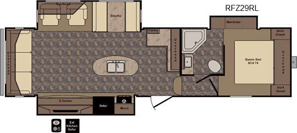 Take your camping up a notch with the ReZerve 29RL fifth wheel by CrossRoads RV. This model features a rear living area, kitchen island, triple slides, and plenty of interior space for the whole family!