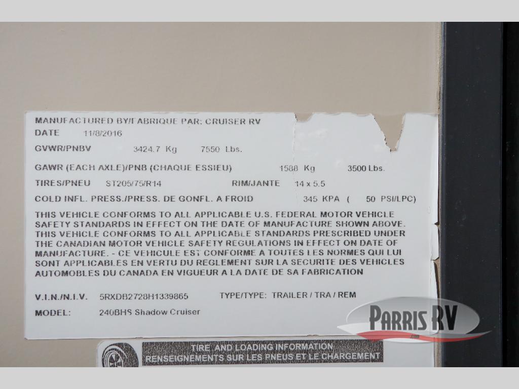 Used 2017 Cruiser Shadow Cruiser S-240BHS