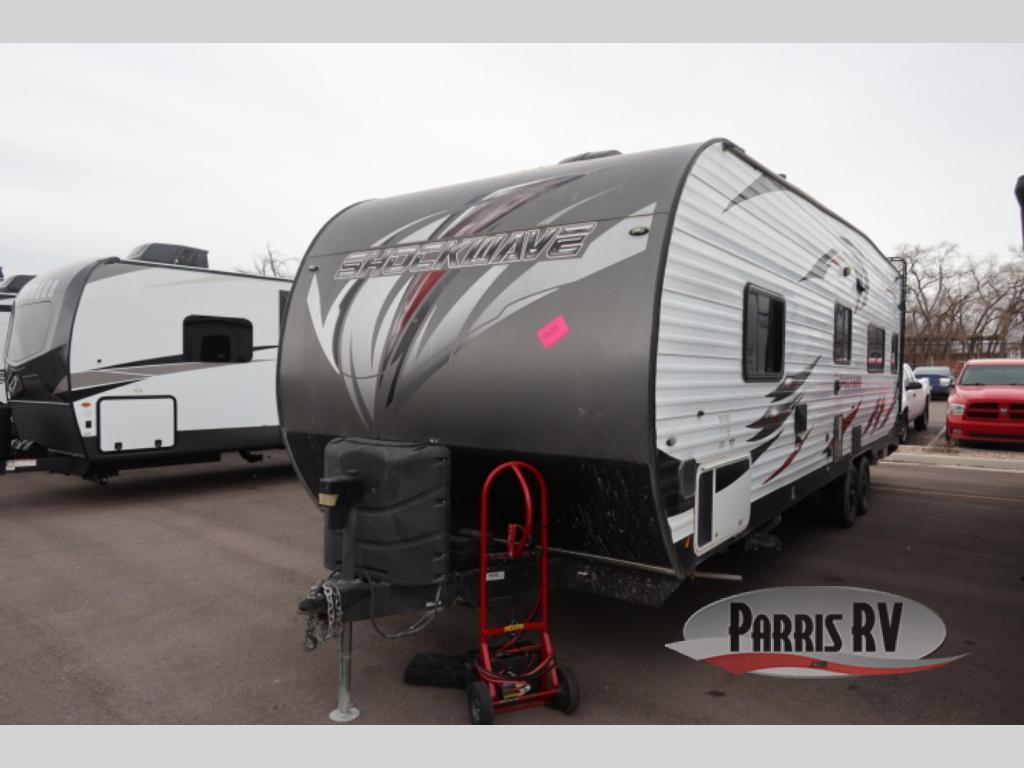 Forest River offers this Shockwave DX Series model 27RQDX with sleeping for six people and over fourteen feet of cargo space.