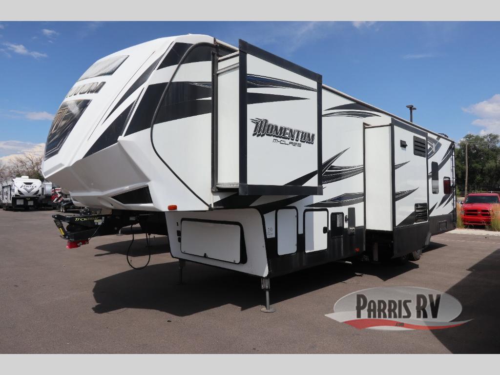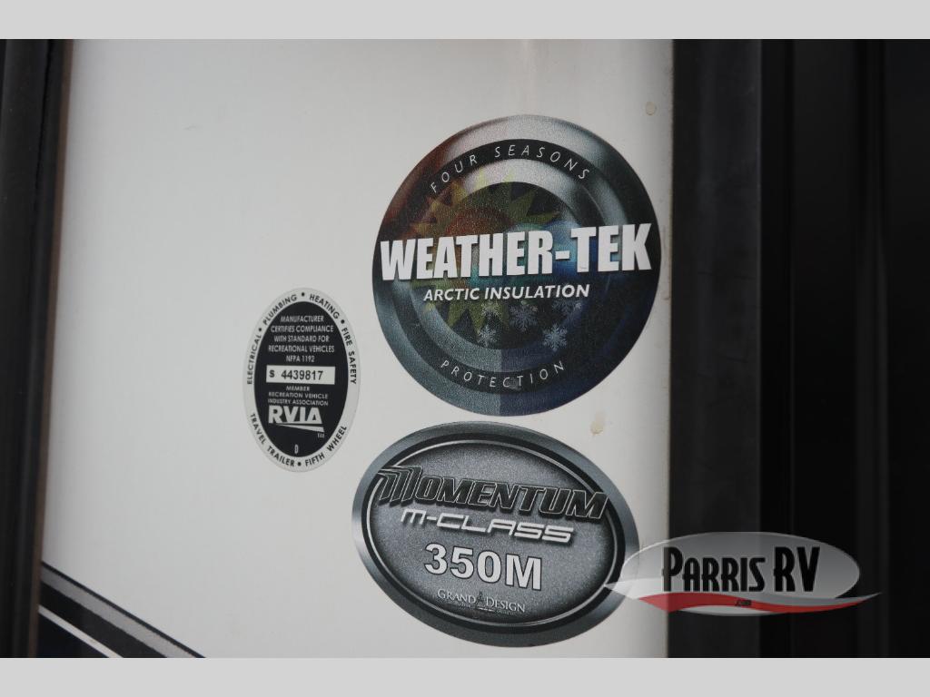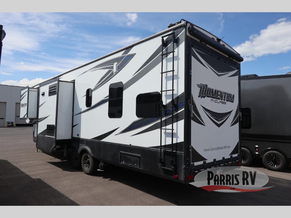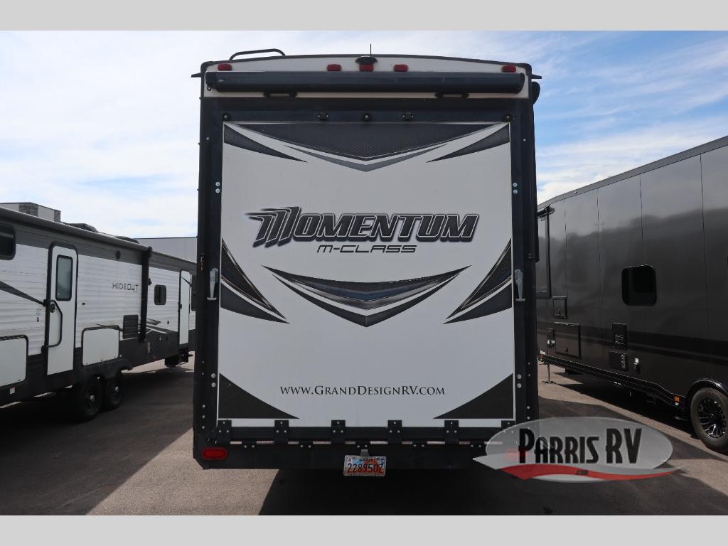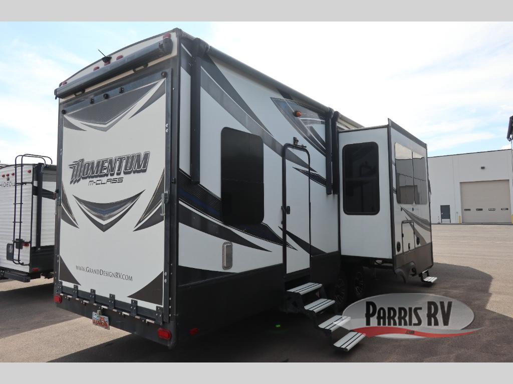 11' Garage!This Momentum M-Class toy hauler fifth wheel by Grand Design has the luxury and space you desire when taking on the great outdoors! This dual entry 350M unit features triple slides, one and a half baths, and 11' of garage space, plus a loft bed too!