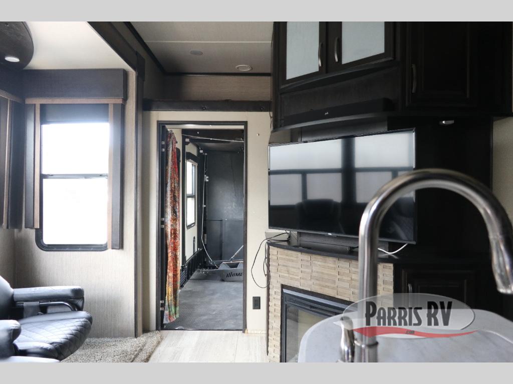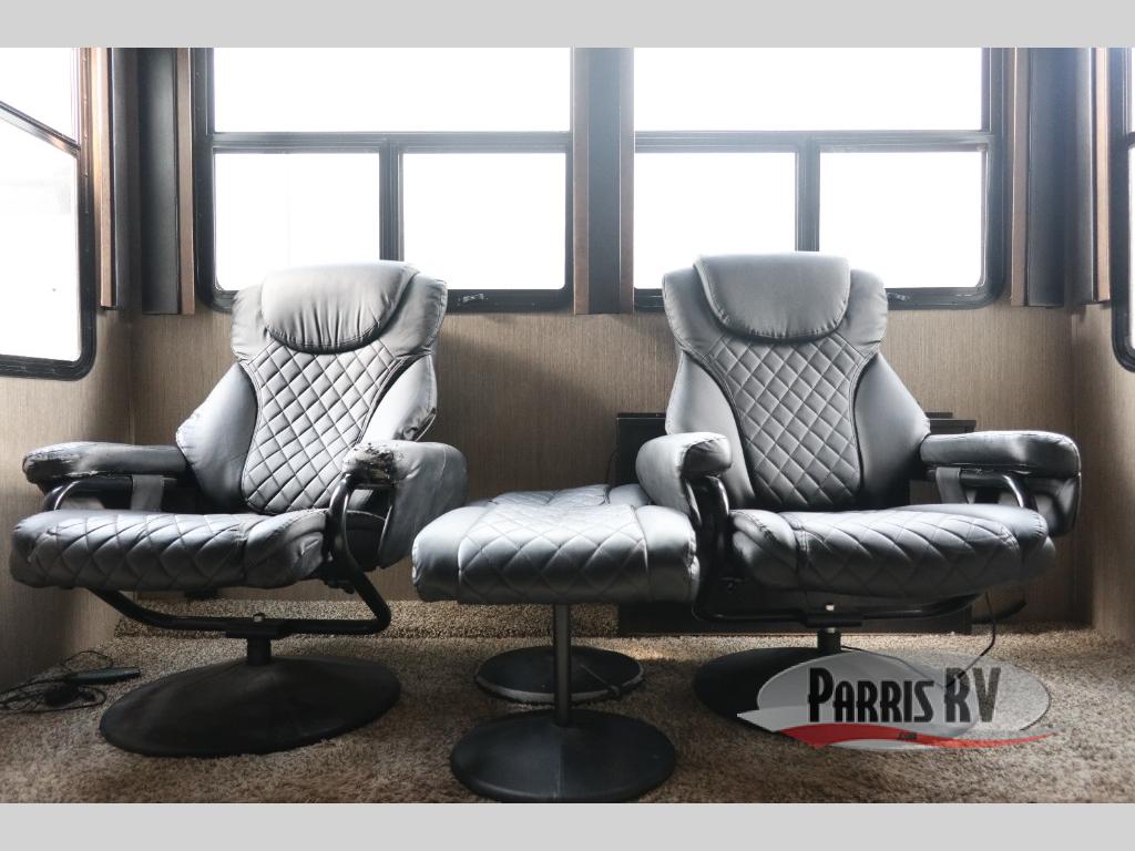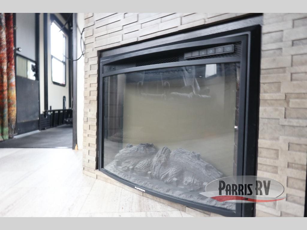 Step inside the main entry door and notice all the home like features with an entertainment center including a LED TV with fireplace below. There is also a pantry/linen straight ahead, a large slide out 4-seat sofa to the left of the main entry door with a stowable table for comfortable seating during mealtimes and more. You can even choose the option with sofa recliners and a dinette, or smaller sofa with dinette in place of the 4-seat sofa if you like.