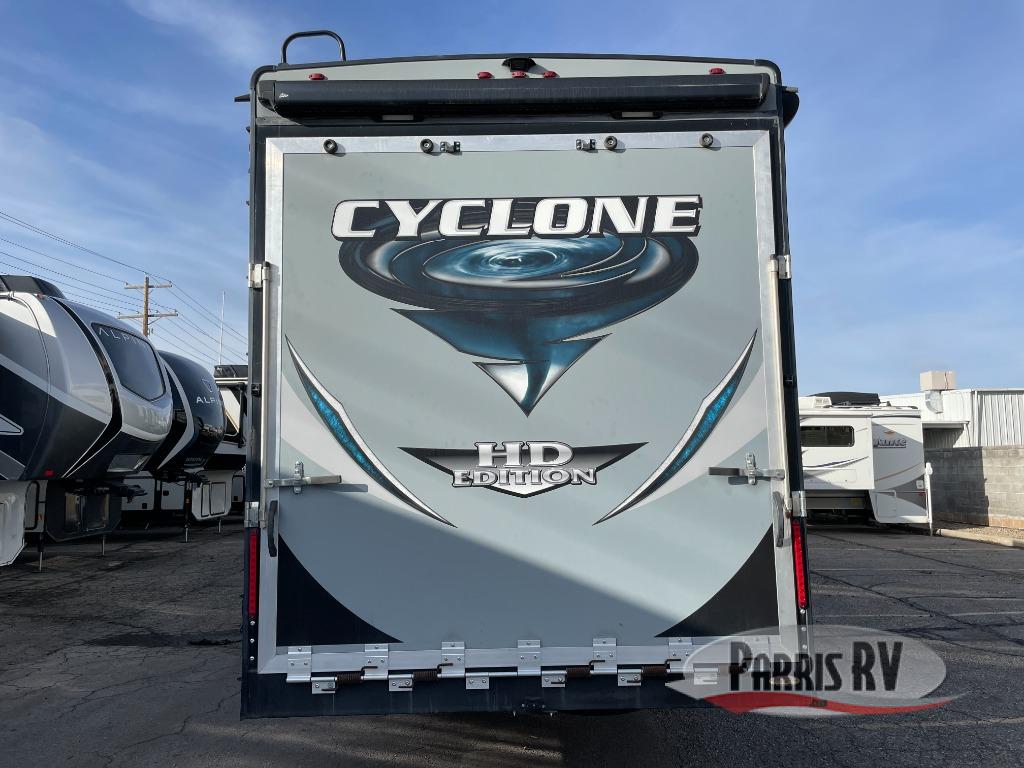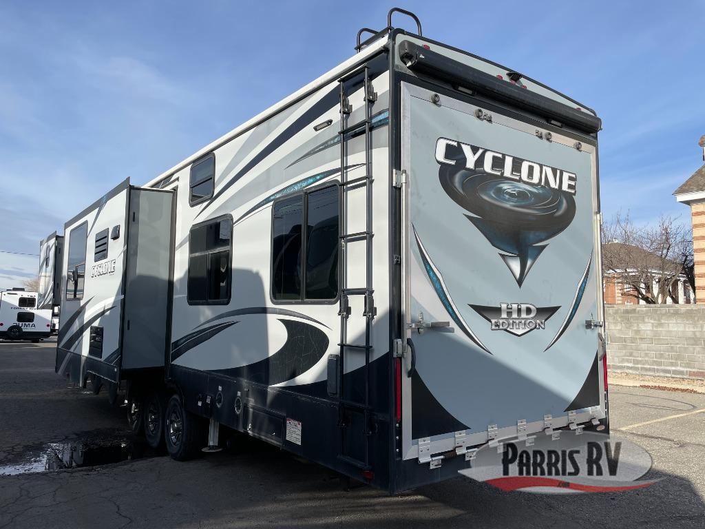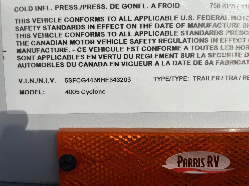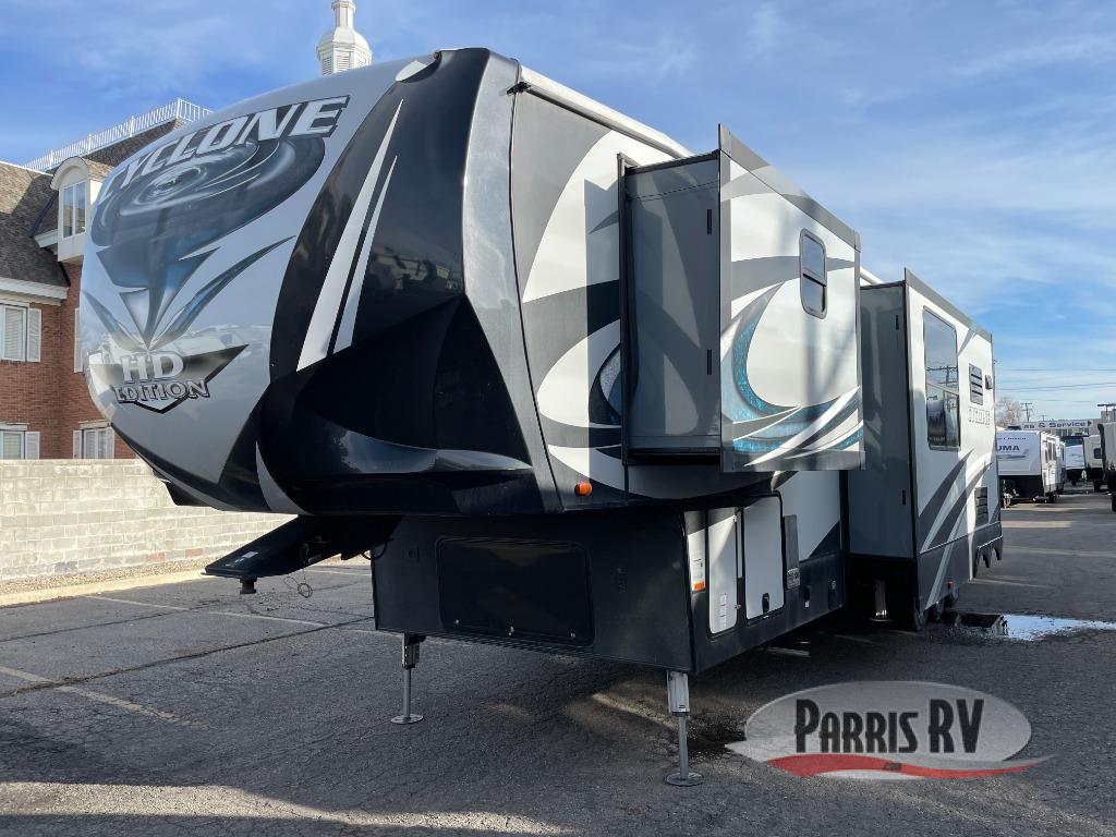 If you are looking for 13' of cargo space with a loft and half bath, dual entry for convenience, and an outside kitchen, plus all the amenities you need to relax after playing with your toys then take a look at this Heartland Cyclone 4005 toy hauler fifth wheel.