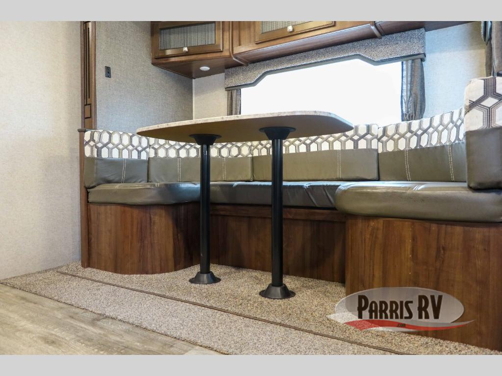 A large slide out u-dinette provides more interior walking space, plus plenty of room to enjoy meals, board games, or just hanging out. You can even turn the dinette into additional sleeping space by folding the table down.