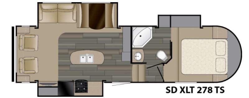 Step inside this Heartland Sundance XLT fifth wheel model 278TS which features a rear living layout, triple slides, and a convenient kitchen island.