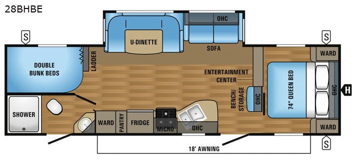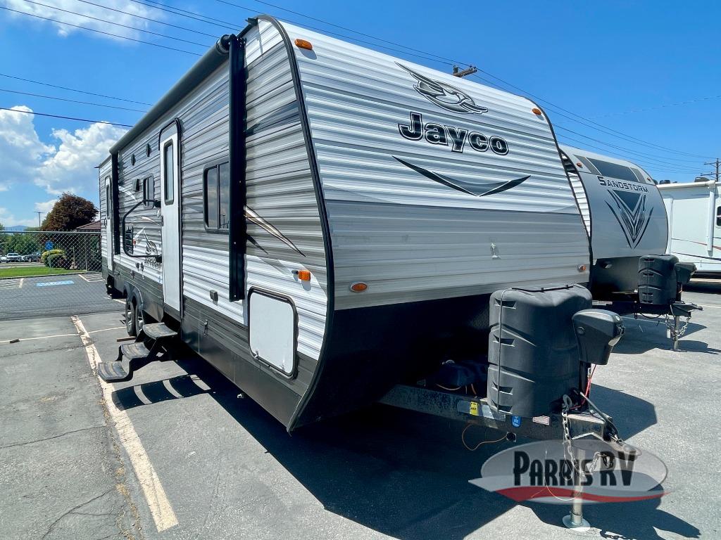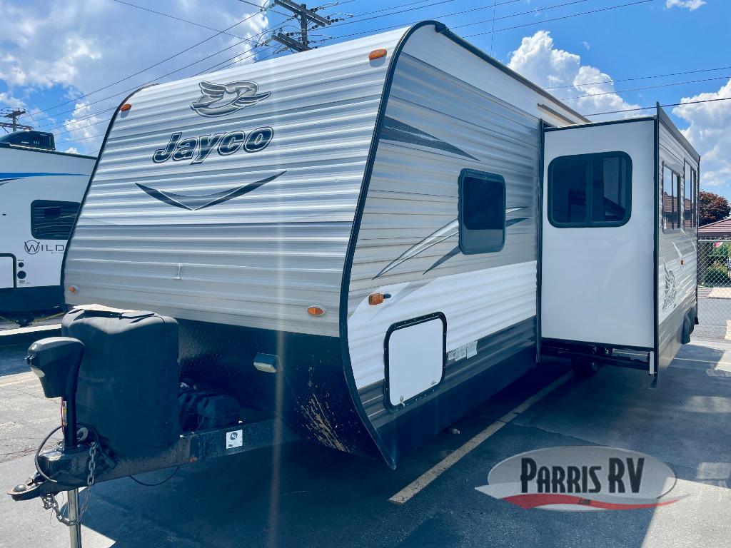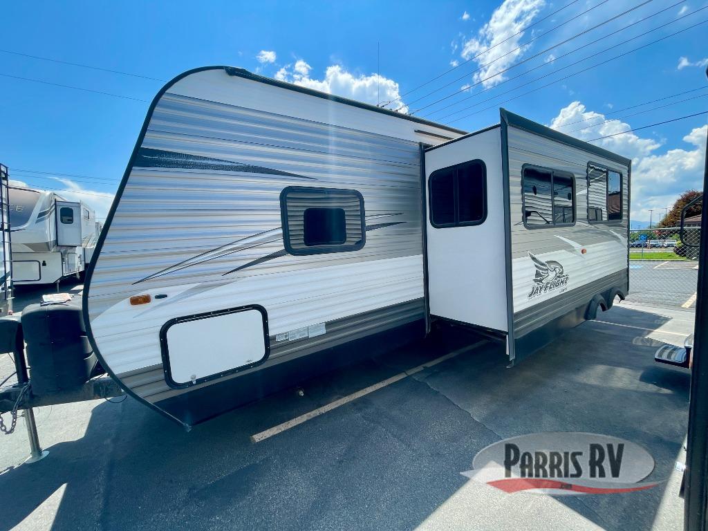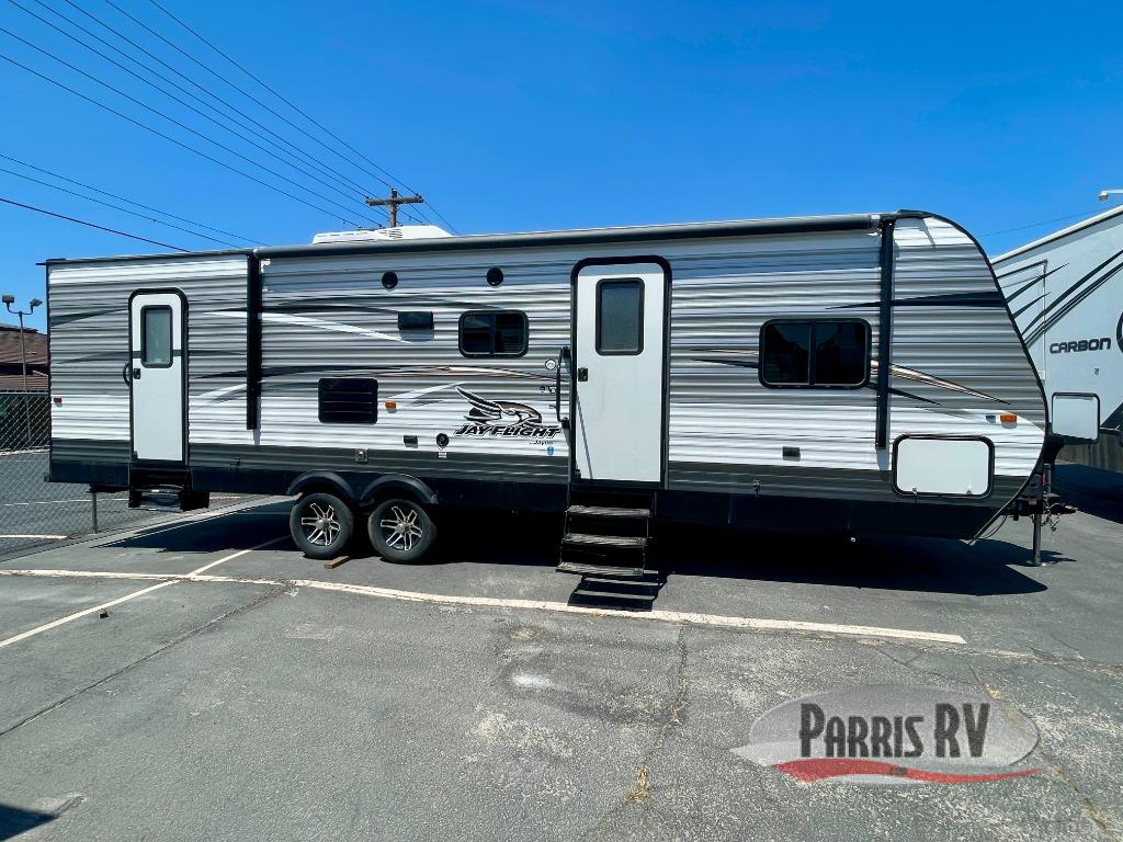 Rear double bunks and a single slide, plus two entry doors is what you will find inside this 28BHBE Jay Flight.