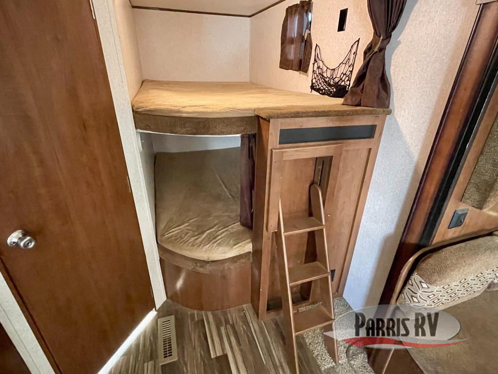 The rear of the travel trailer offers a set of double bunk beds, which is perfect for your kids.