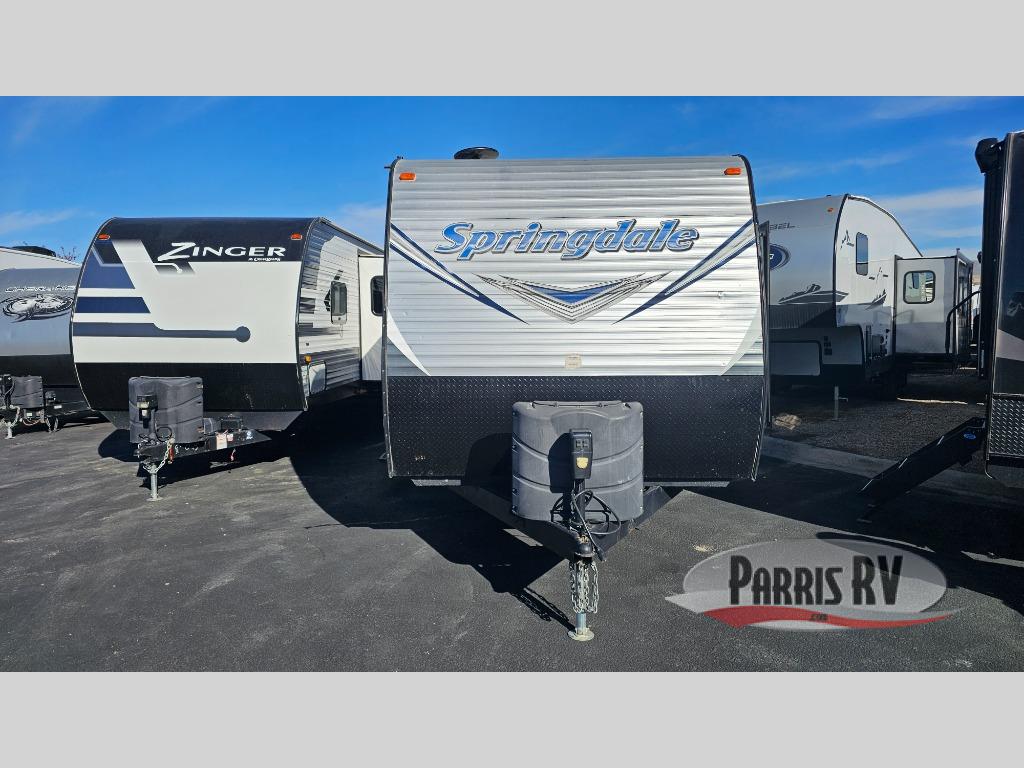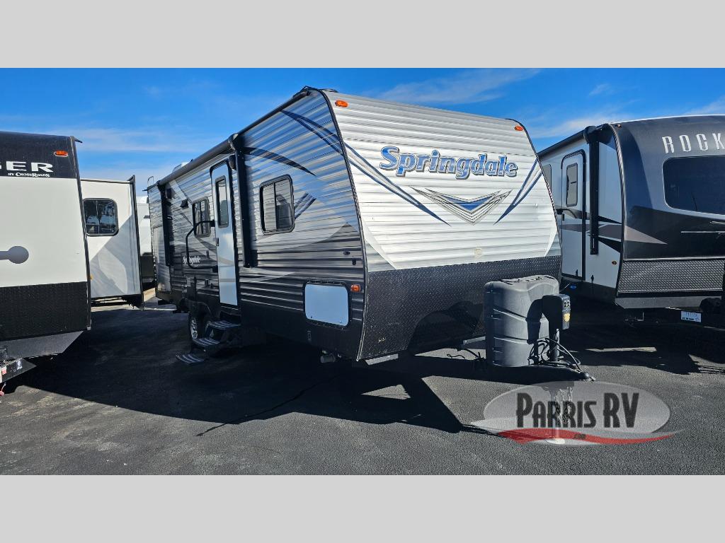 This Keystone Springdale features a rear bath layout, a slide out u-shaped dinette, a front private bedroom, and an outdoor entertainment center, plus more!