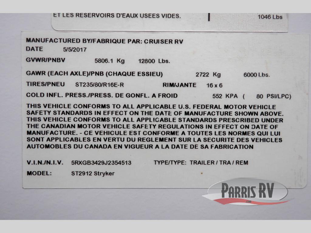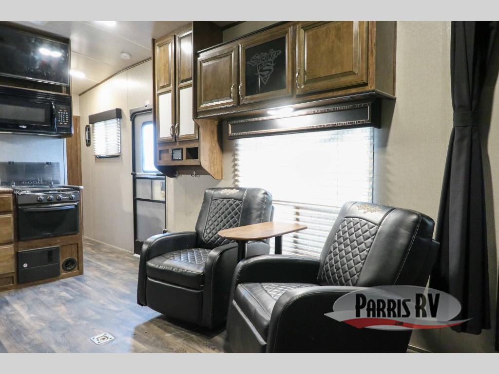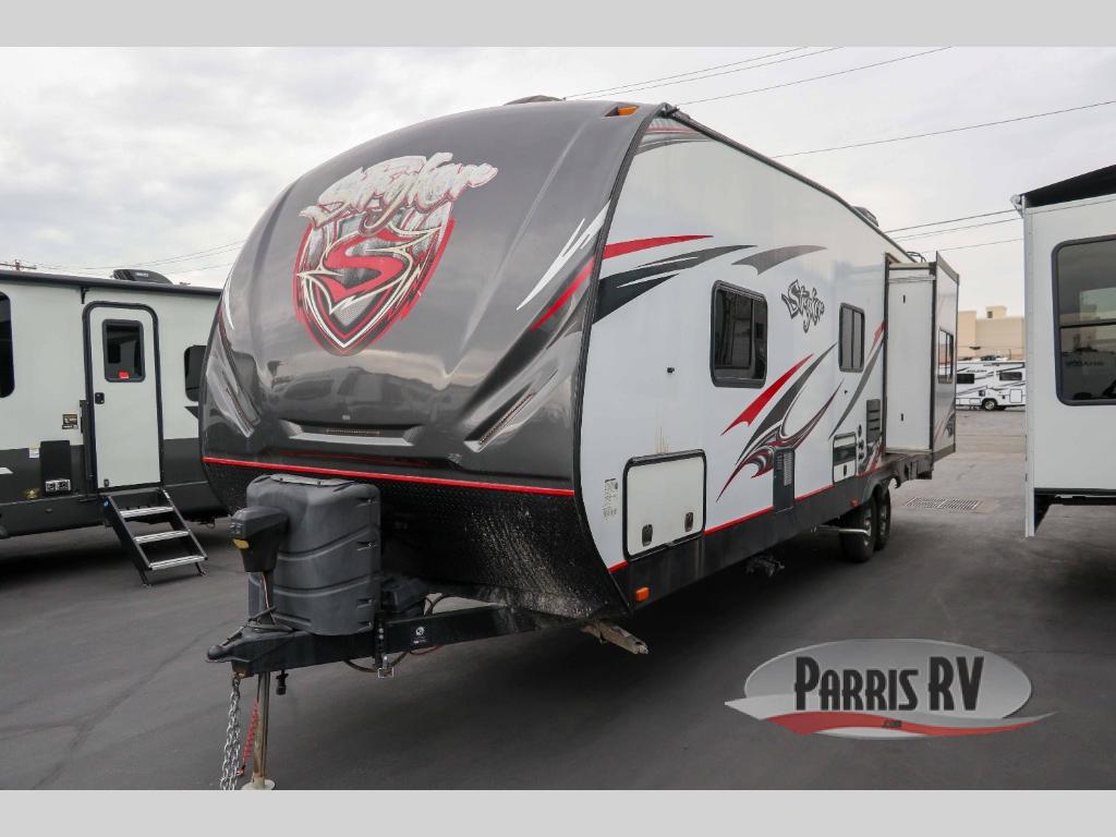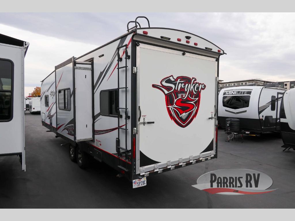 You are sure to enjoy your next toy hauling adventure in this Cruiser Stryker ST-2912 toy hauler travel trailer. There is a KING size bed, single slide out, and a dual entry bath. You have three separate sofas and two recliners for relaxing throughout the day. All three sofas can turn into a sleeping space or two at night.