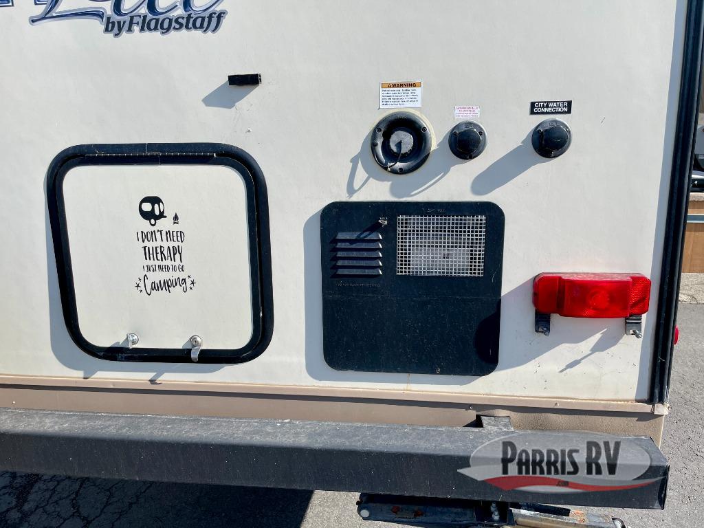 For any camping trip you will want a Flagstaff Micro Lite travel trailer! These models have a beautiful Driftwood interior with solid wood and raised panel doors and drawers. A few other interior features include digital AM/FM/CD/DVD with remote, decorative valances, engineered mold and mildew resistant floor covering, and a WiFi ranger booster. Along the exterior there is a fully aluminum frame, radius roof with interior vaulted ceilings which gives you the most headroom, plus radius cornered windows and doors. The Standard Package D offers features such as a fully enclosed underbelly, outside speakers, a Maxxair Ventilation fan and vent cover, plus so much more!
