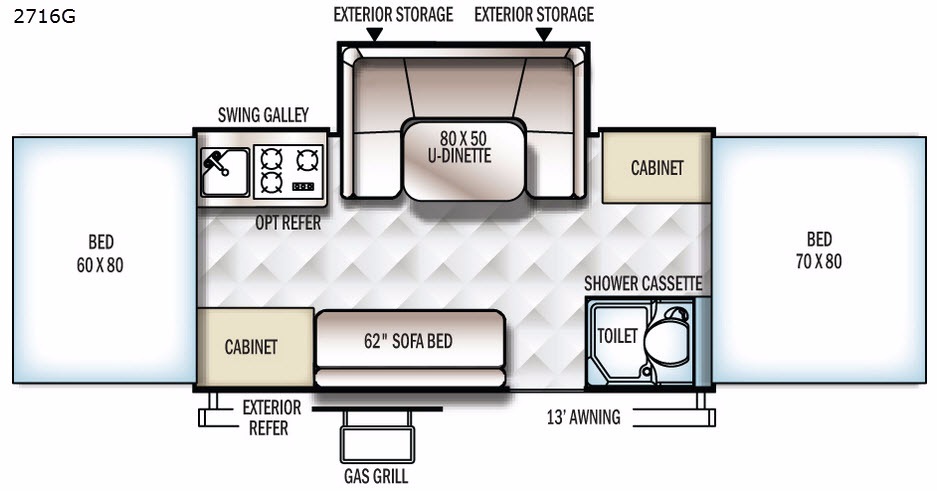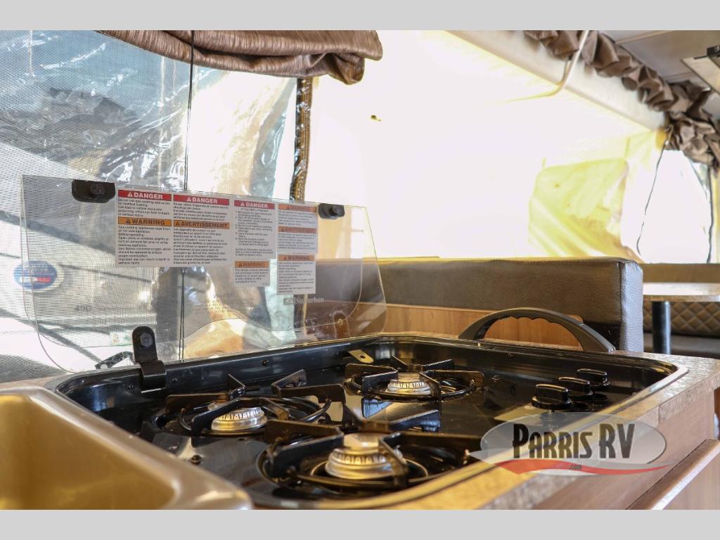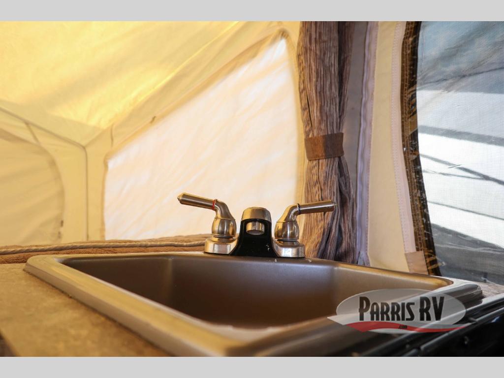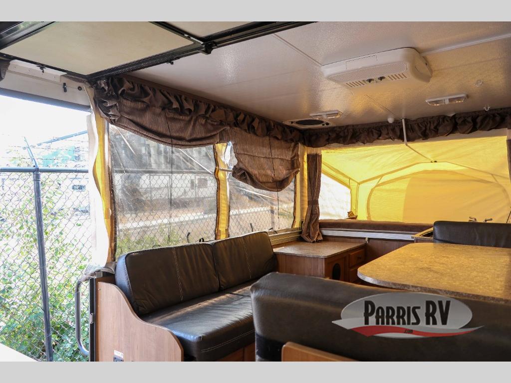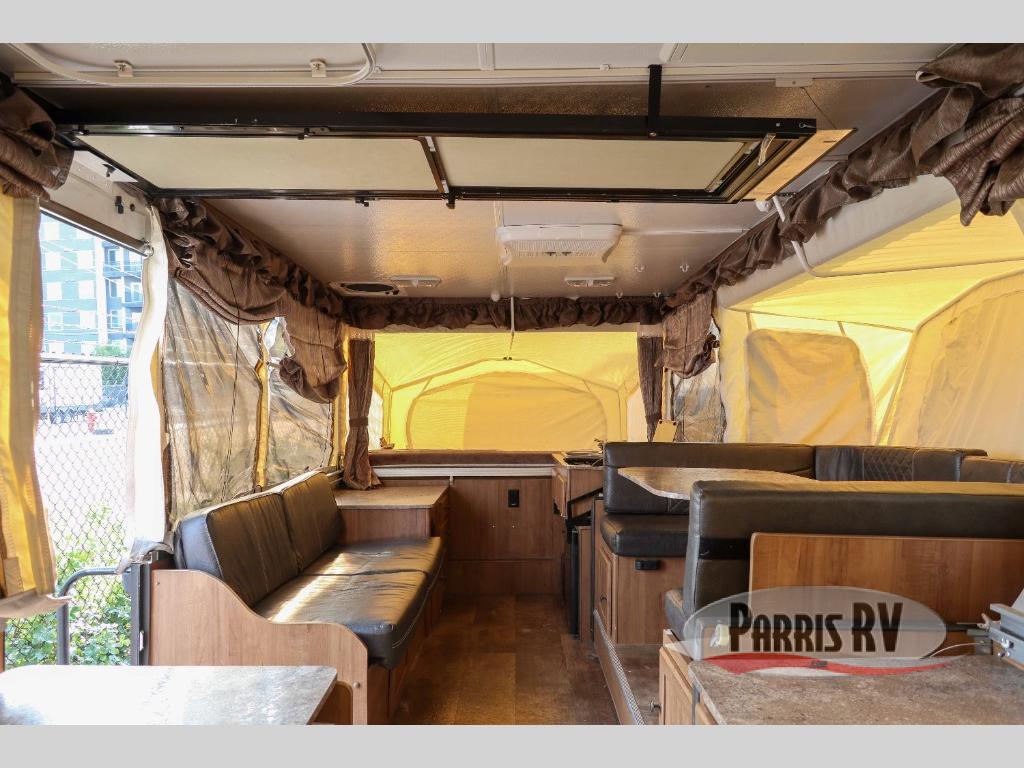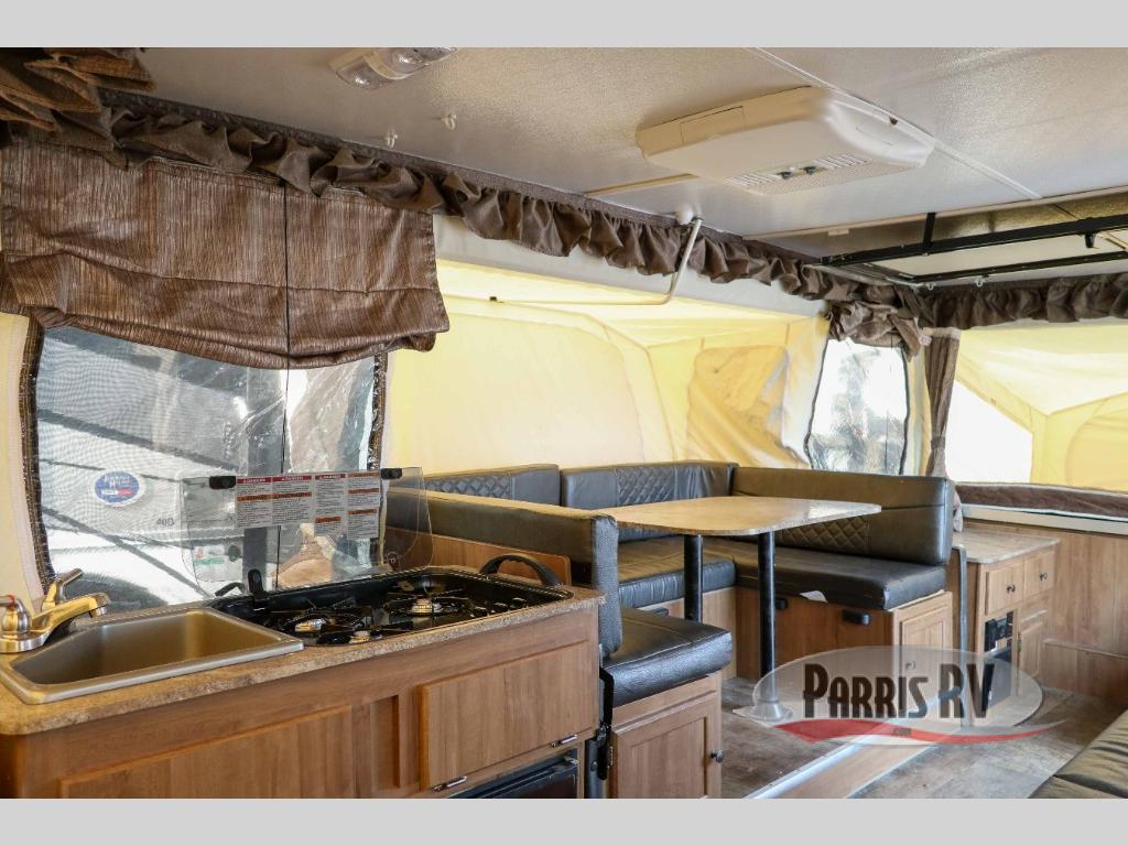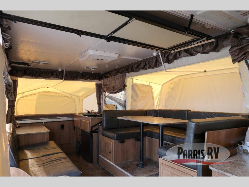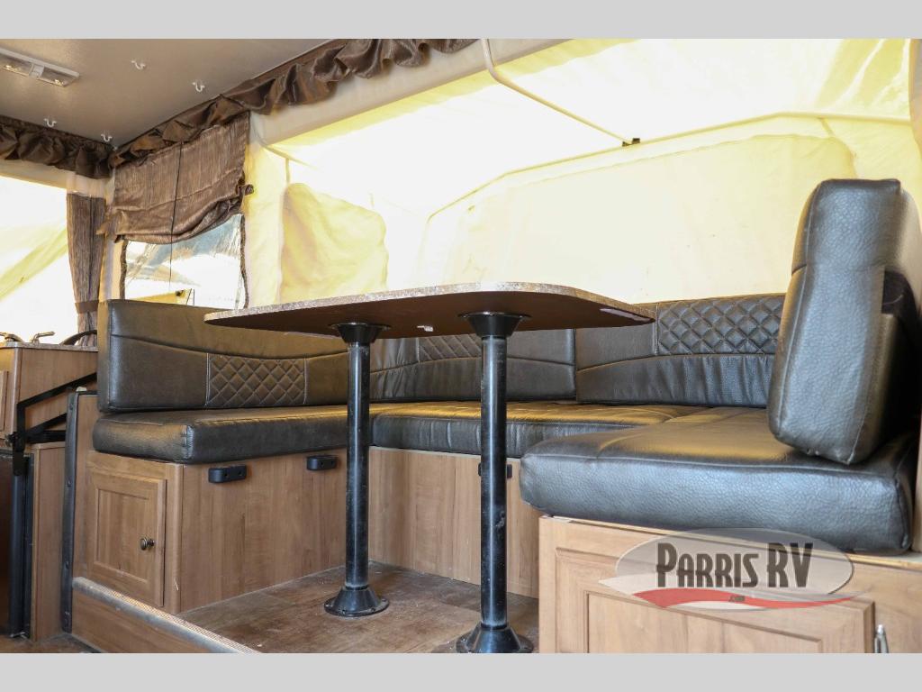 This Rockwood Premier 2716G folding pop-up camper by Forest River features a slide out u-shaped dinette, sofa, shower cassette and toilet, plus an exterior refrigerator, and there is more!
