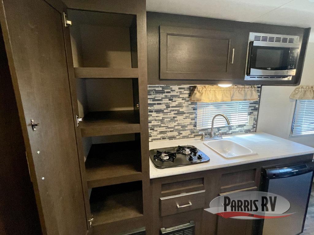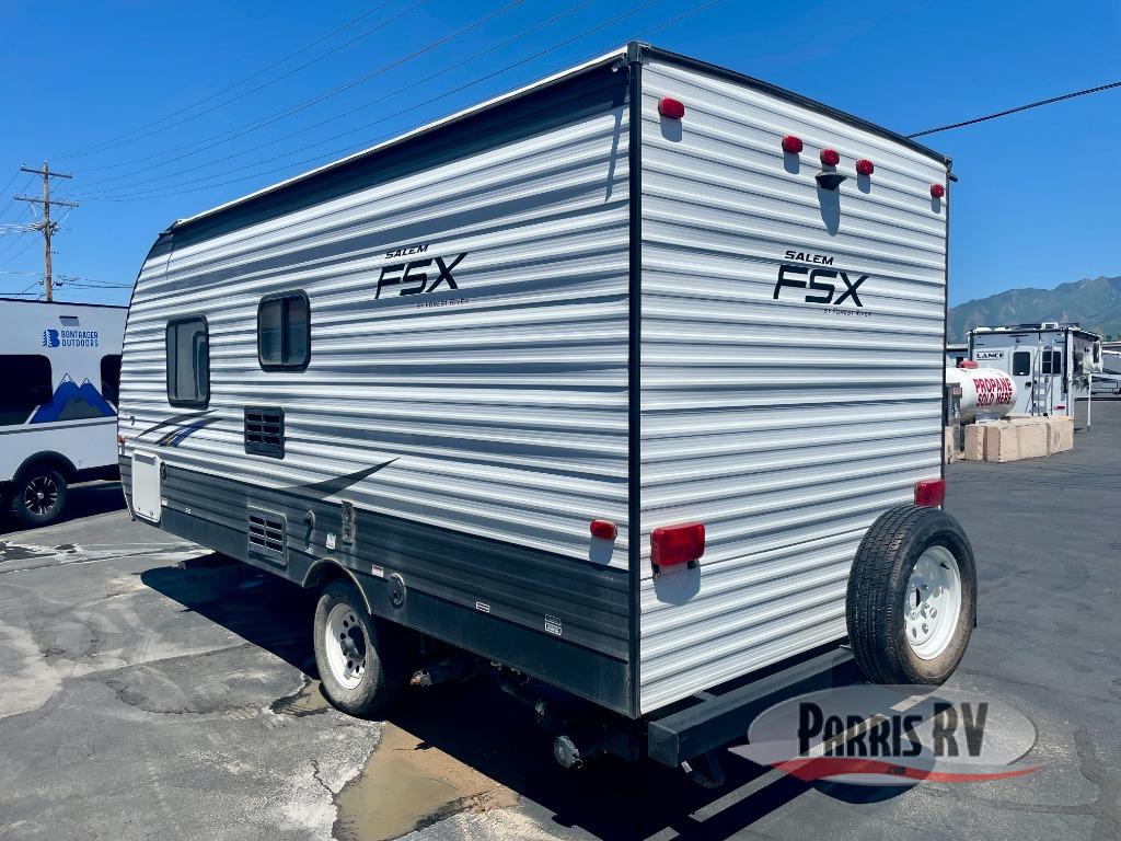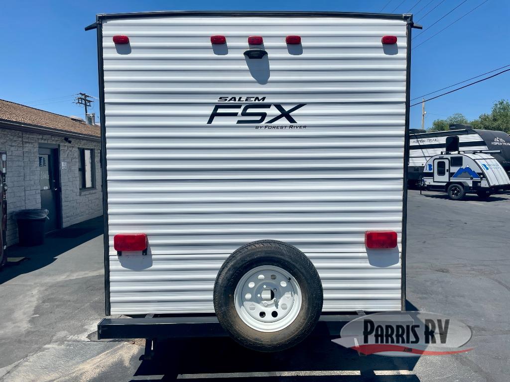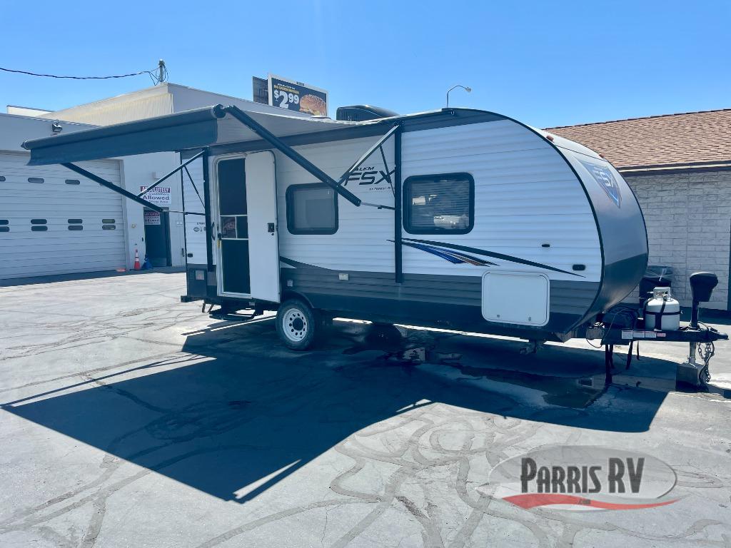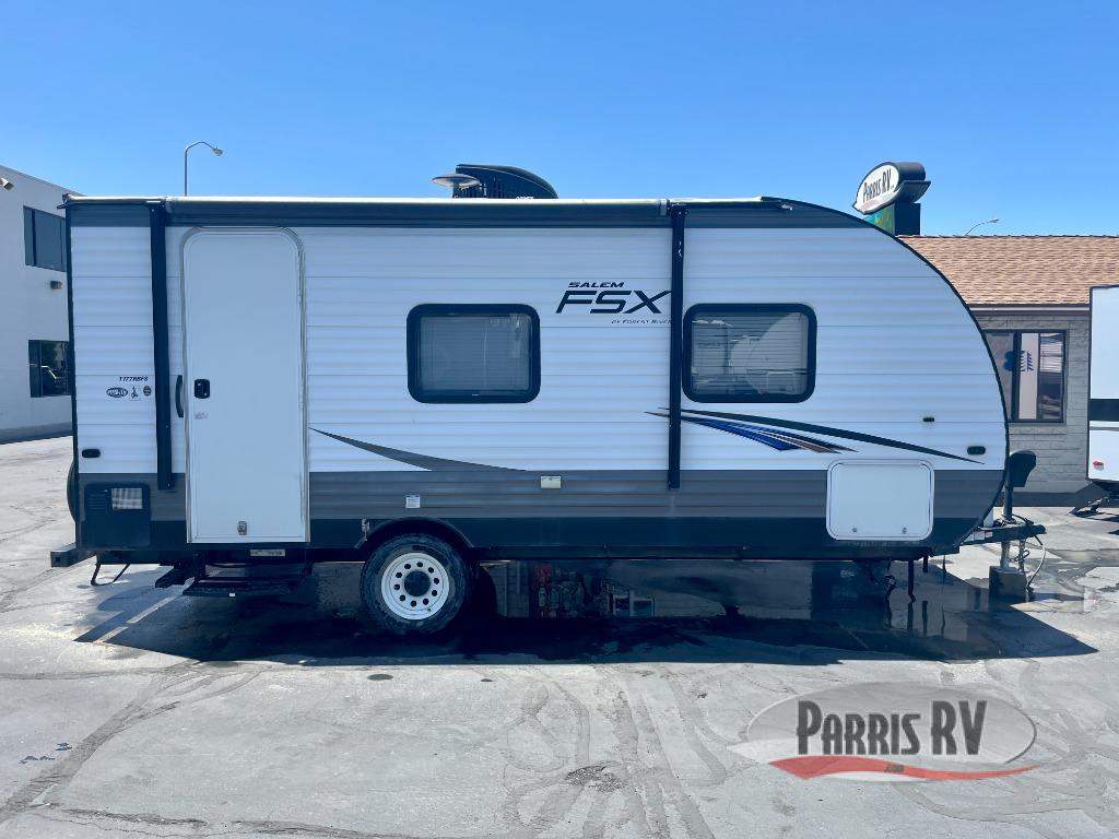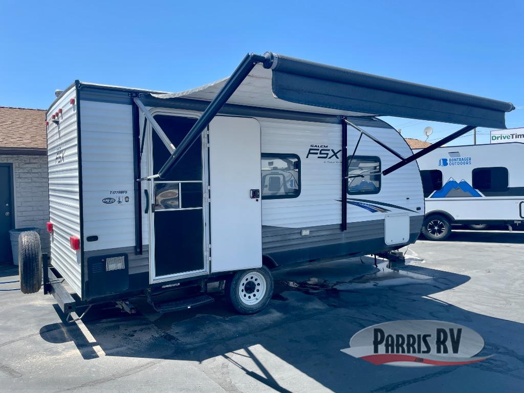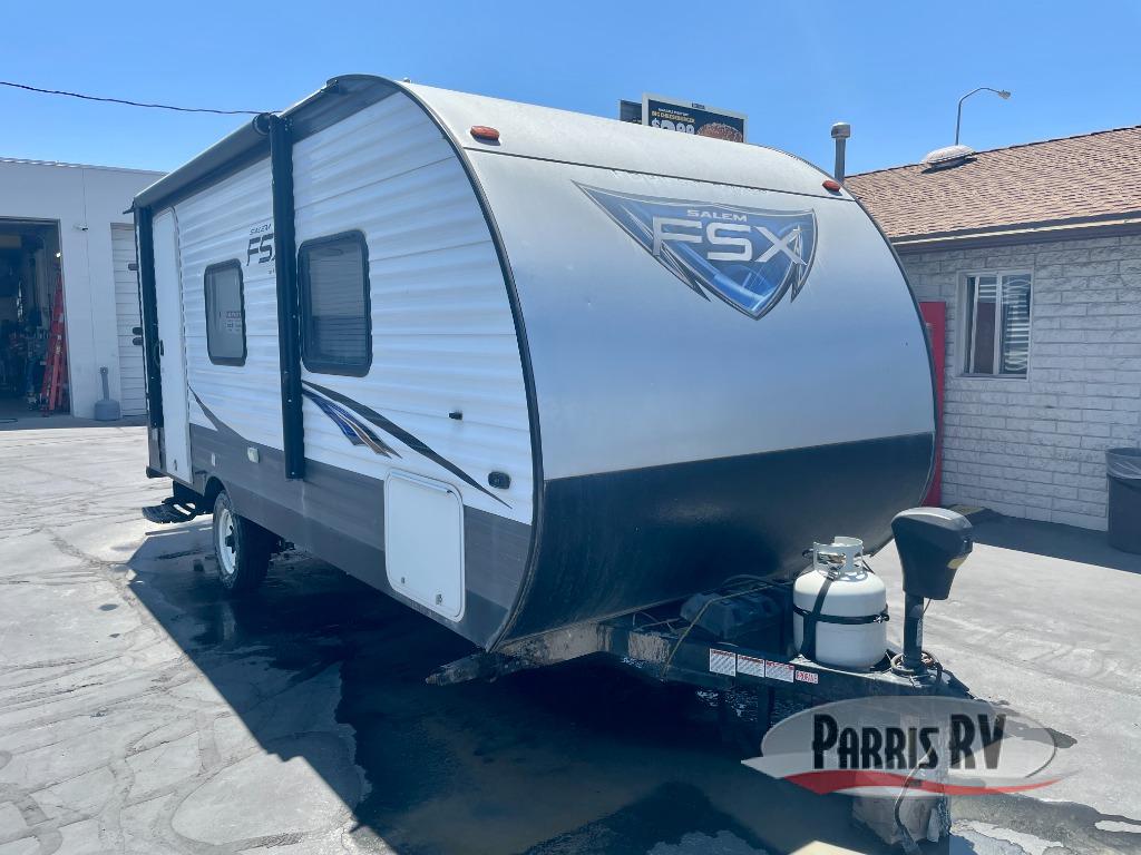 Take your camping up a notch with this Salem FSX lightweight travel trailer. No more tent camping and waking up with everything damp from the overnight dew. With this unit you will wake completely dry and rested after a great night on the RV queen bed. The bathroom accommodations allow you to easily get ready for your new day. Cooking is also a breeze with the kitchen amenities provided. You will appreciate the two-burner cook-top and microwave oven, plus refrigerator for your perishable goods. This unit also features plenty of storage with a large wardrobe along the back wall and along either side of the bed, overhead cabinets above the dinette, plus the outdoor pass-through storage will hold all of your outdoor games and camping gear!