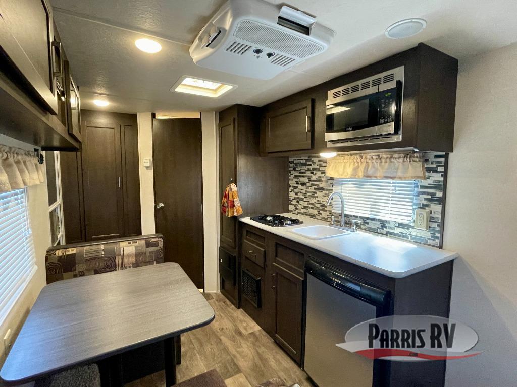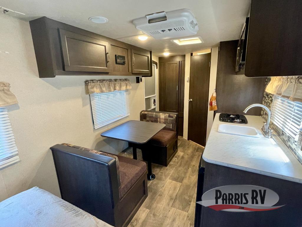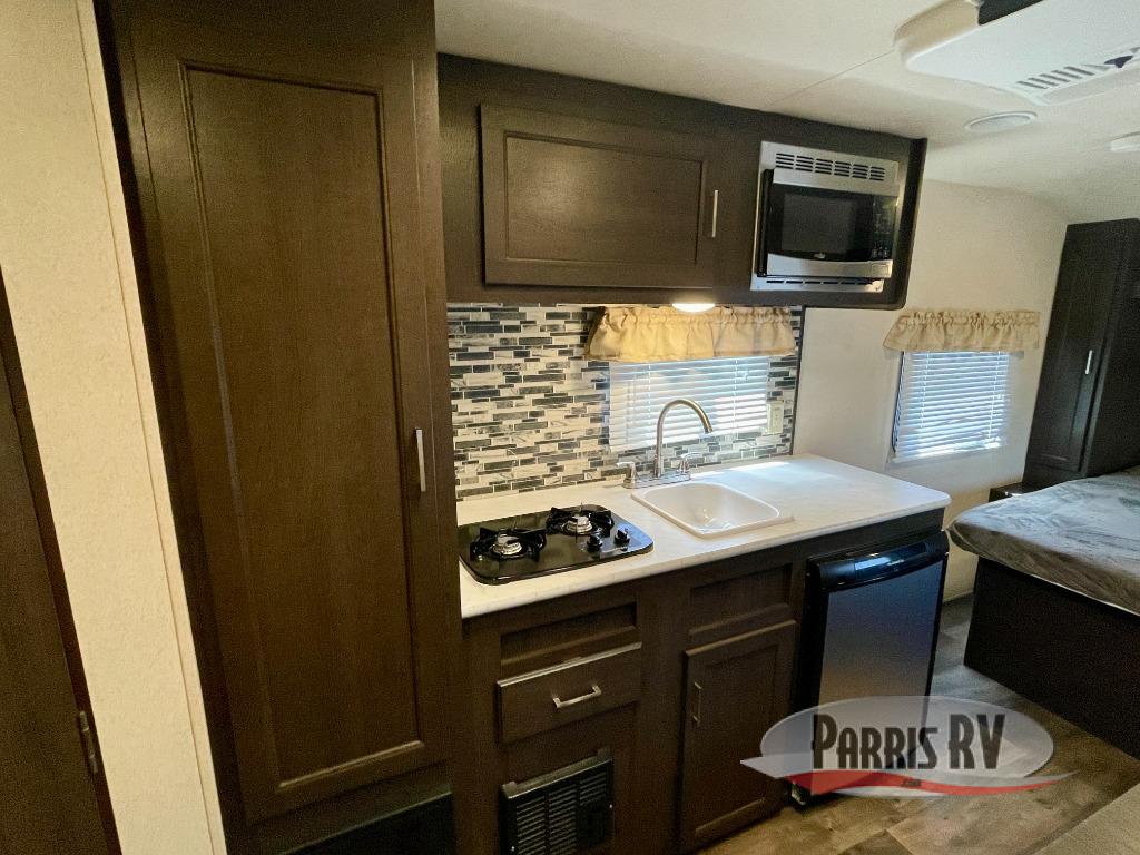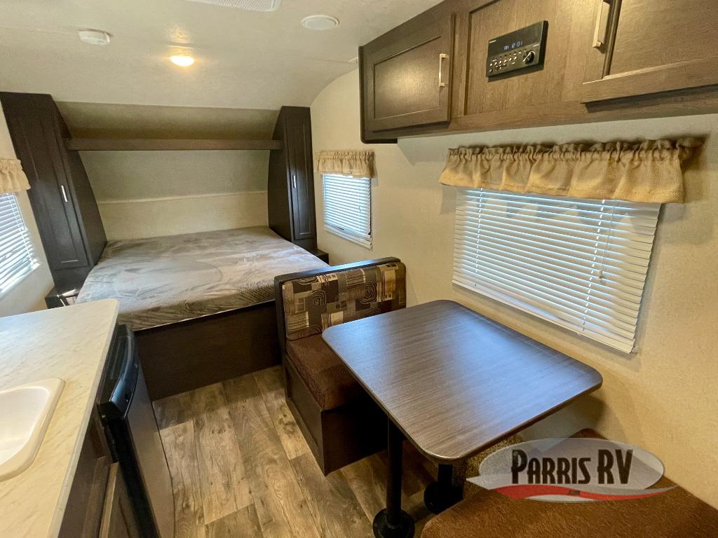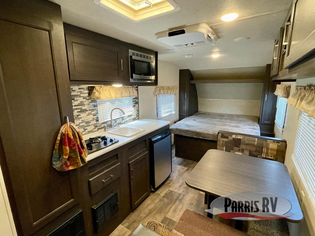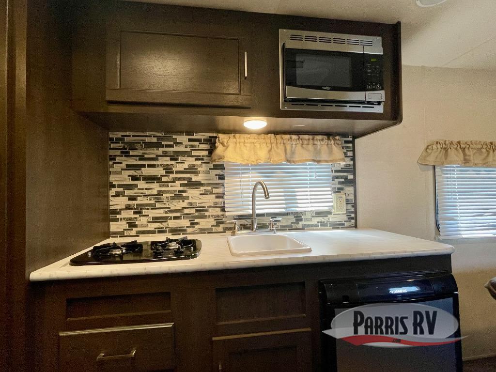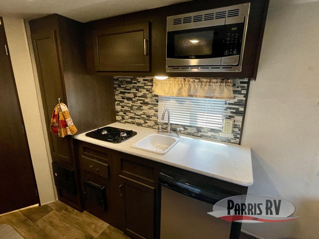 Take your camping up a notch with this Salem FSX lightweight travel trailer. No more tent camping and waking up with everything damp from the overnight dew. With this unit you will wake completely dry and rested after a great night on the RV queen bed. The bathroom accommodations allow you to easily get ready for your new day. Cooking is also a breeze with the kitchen amenities provided. You will appreciate the two-burner cook-top and microwave oven, plus refrigerator for your perishable goods. This unit also features plenty of storage with a large wardrobe along the back wall and along either side of the bed, overhead cabinets above the dinette, plus the outdoor pass-through storage will hold all of your outdoor games and camping gear!