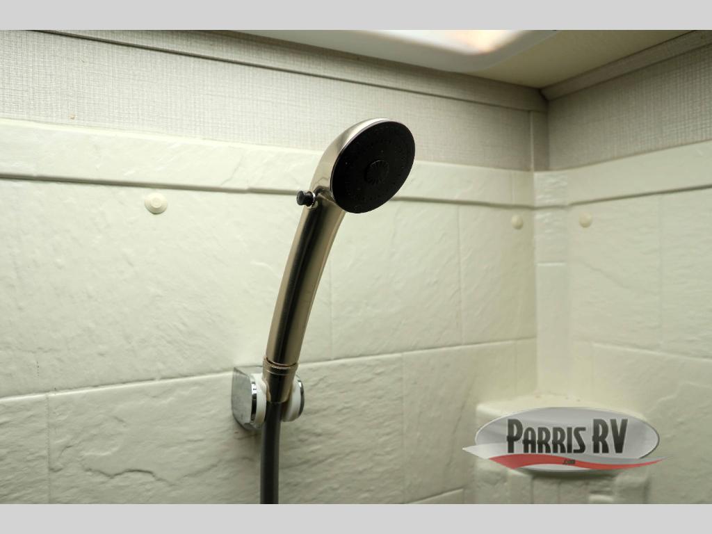 There are plenty of overhead cabinets throughout the fifth wheel. Outside you can enjoy extra storage space thanks to the pass through storage area. The outside shower allows you to easily clean up before coming inside, and more!