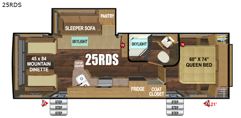 Imagine relaxing on one of the sleeper sofa while the kids are playing board games on the dinette. This Timber Ridge 25RDS will have you appreciating the convenience of dual entry, and much more! After exploring outdoors you can enjoy the comforts of home with outdoor adventure just steps away. You will find other useful features such as a coat closet, and flip-up counter in the kitchen. You will also find plenty of storage inside and outside, plus an awning over both entry doors. You know you love playing outside but prefer sleeping inside. It's time to start your next adventure today!