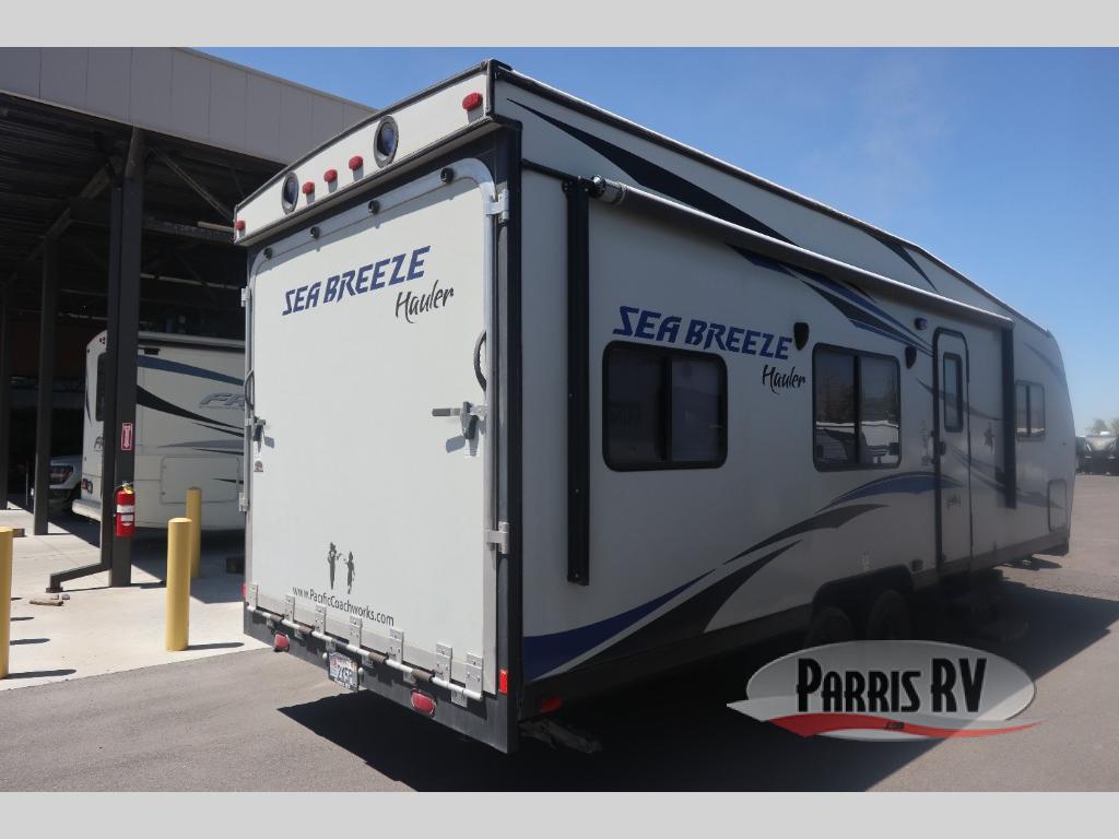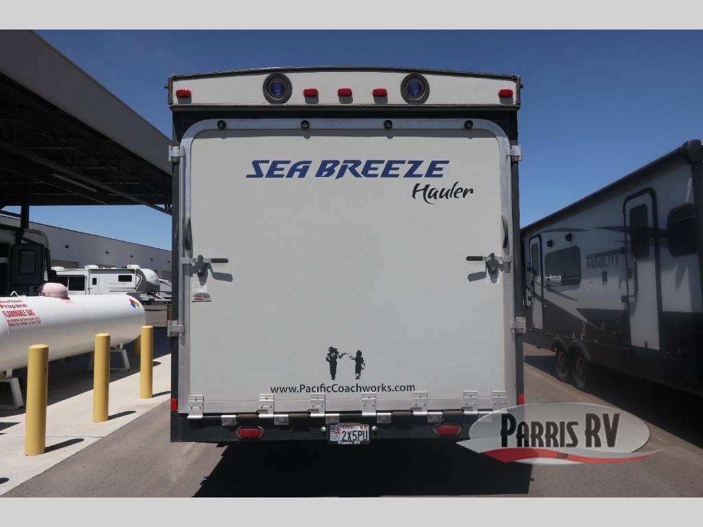 This Sea Breeze toy hauler travel trailer by Pacific Coachworks features a 14' 4" garage and a 7' ramp for easy access to all your toys!