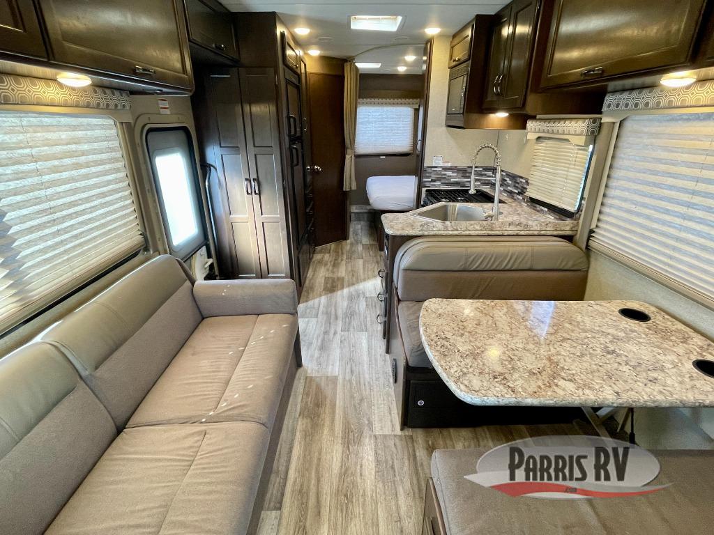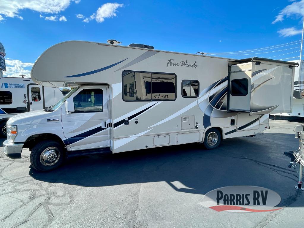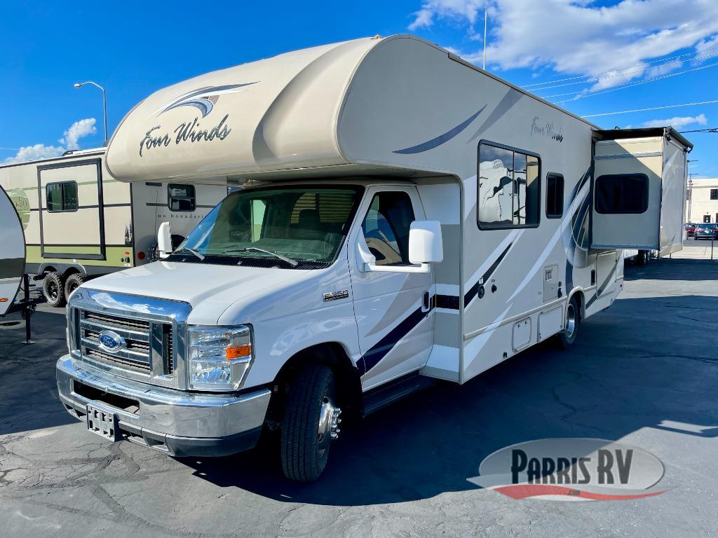 It's time to pack for your next trip in this single slide out Thor Motor Coach Four Winds class C model 26B. There is a rear bedroom with a privacy curtain and a queen bed for mom and dad. Come visit with your family at the 68" jack-knife sofa or the 71" Dream dinette. Above the cab there is a 40" LED TV so you can watch a movie. The 54" x 96" cab-over bunk is ideal for a child or two! Come enjoy the outdoors while sitting under the 18' awning, or if you want an outdoor movie night then you will want to add the optional exterior 32" LED TV! This unit is also available with a Chevy Dually chassis.