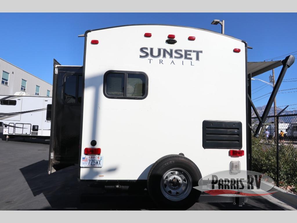 If you find yourself wishing you had an all-inclusive trailer to use on your outdoor adventures, then you need to check out this Sunset Trail Super Lite travel trailer. With its private master suite that houses a queen-size bed and private bathroom entrance, this trailer exudes luxury. The three slides that have been included in this unit add extra space for everyday living, and the 34" radius shower that has a skylight above creates a spacious and bright feeling as you get ready each morning.