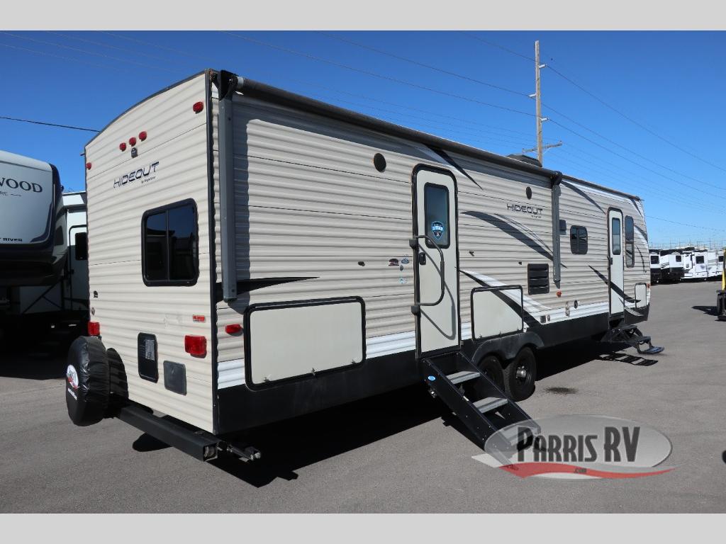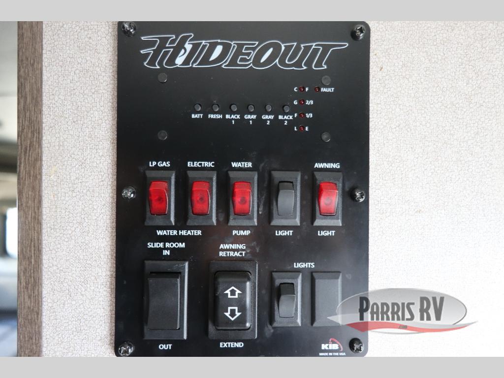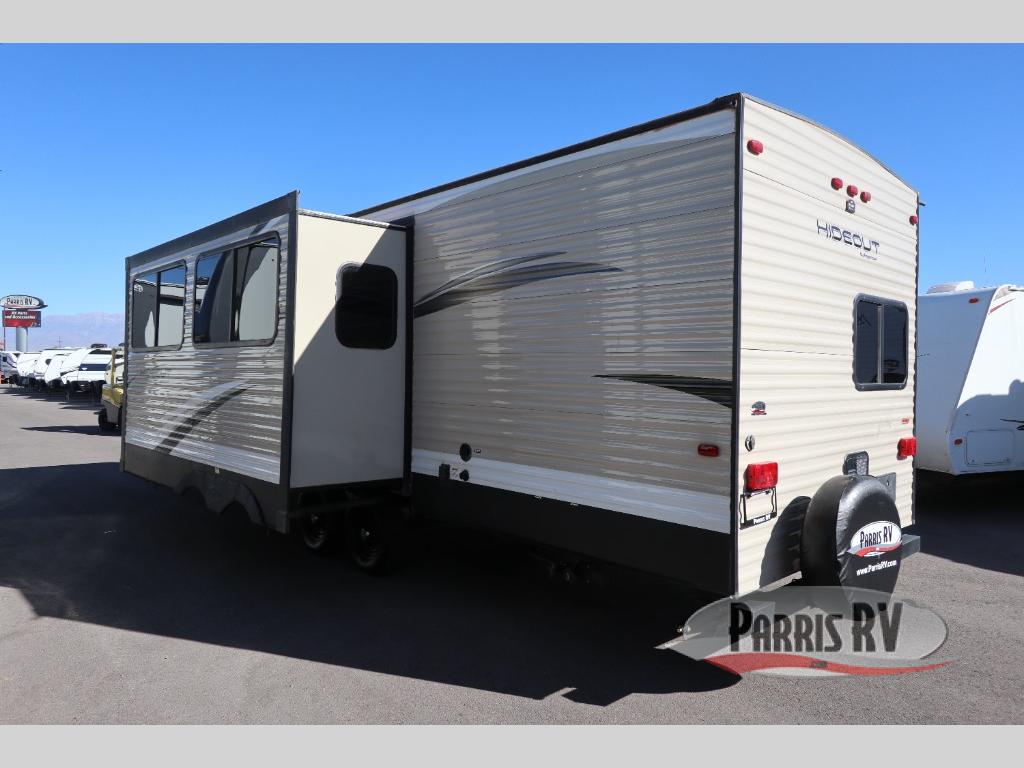 Don't leave home without this Hideout travel trailer! This unit will be the perfect complement to every family getaway because it has the capacity to sleep eight people. You will also appreciate the many extra amenities that have been included, like the outdoor kitchen, the exterior fireplace, and the coffee bar. After a long day of adventuring, you will look forward to relaxing on the U-shaped dinette.