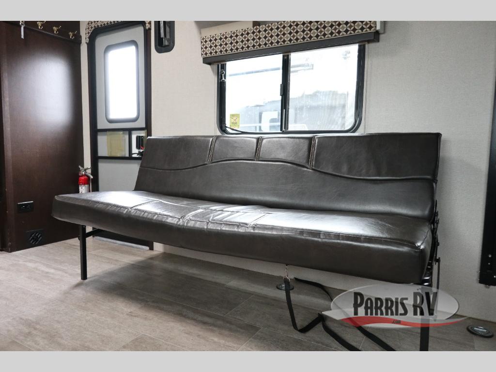 This KZ Sporster 260TH fifth wheel allows you to pack in all your toys and still enjoy luxurious features from home. It features plenty of sleeping space with the 72" roll over jiffy, a queen bed, and an optional 60" power bed with room to sit or sleep. After prepping your meals, you can choose to enjoy them in the recliner chair by the movable table or outdoors underneath the 14' power awning with drip rails. You will have plenty of space to keep your necessities inside of the front storage area.