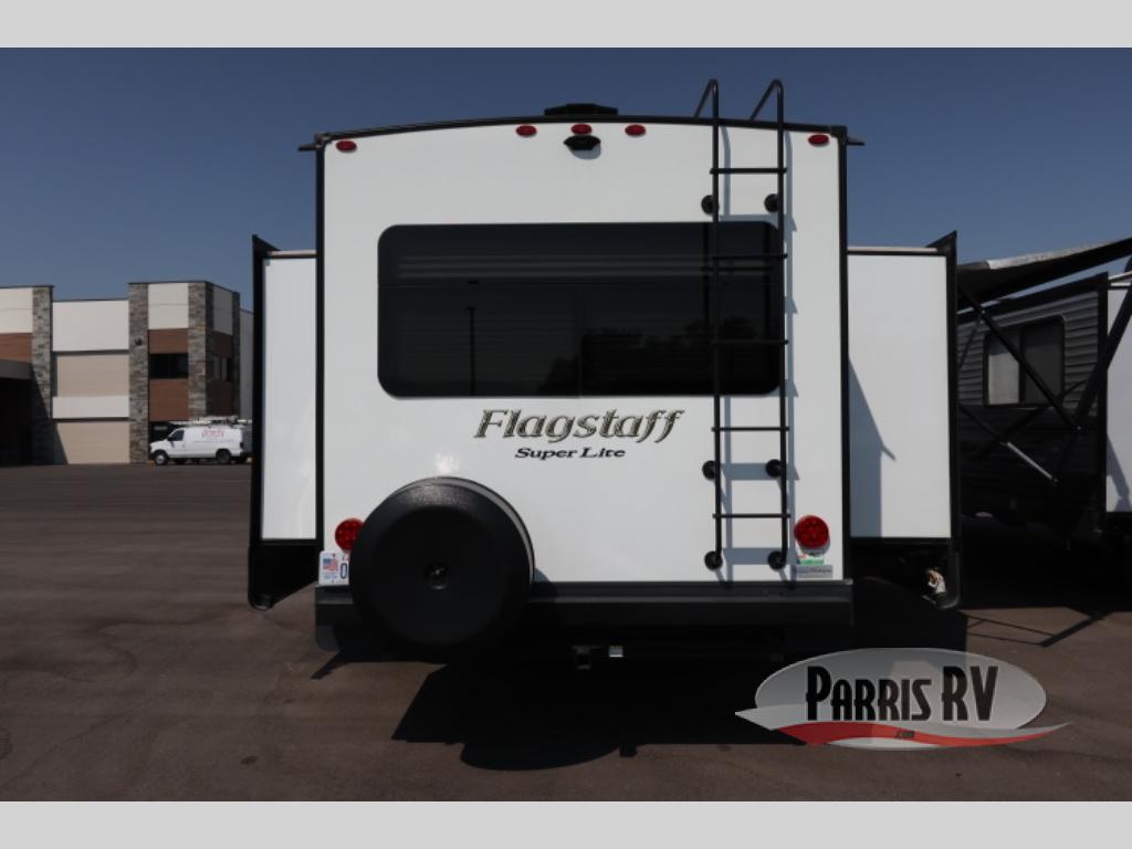 It will be easy to make plenty of memories with your family when you choose to camp with a Flagstaff Super Lite travel trailer by Forest River. These models have beautiful slatewood cabinetry with hardwood cabinet doors and drawer fronts, solid surface kitchen countertops, and ceiling LED 12 volt interior lighting. The 6 sided aluminum cage construction offers lightweight towing, the radius roof with interior vaulted ceilings give you more headroom, the WiFi ranger Wifi booster Sky 4, the enclosed underbelly, and the power awning with adjustable rain dump and LED light strip, will give you years of enjoyment!