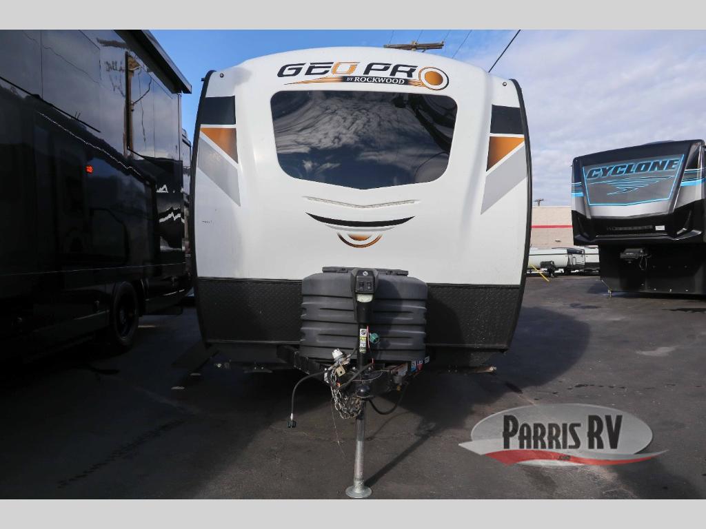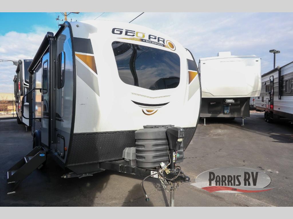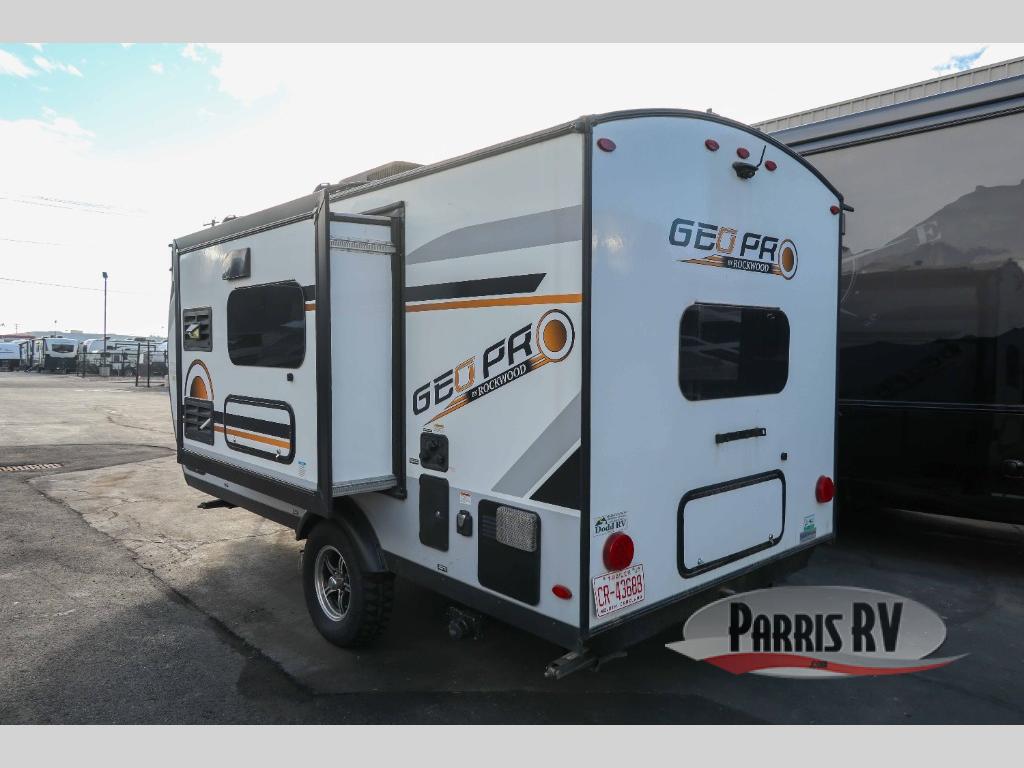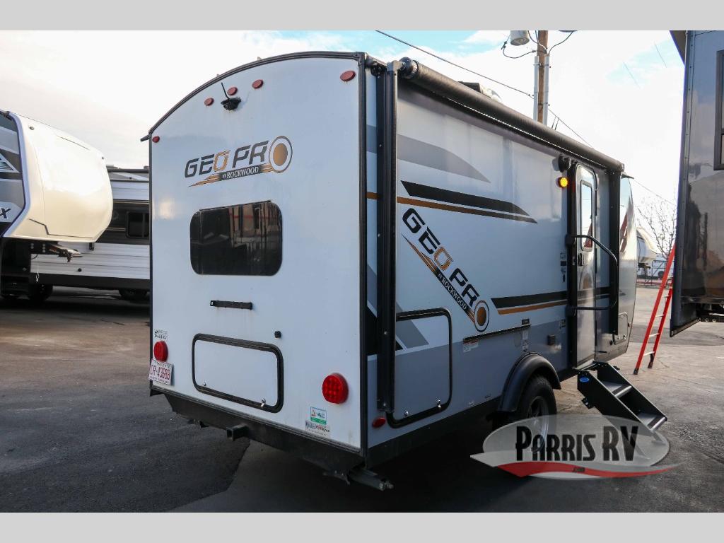 The Forest River Rockwood Geo Pro travel trailer is built to be towed by most "crossover" vehicles and smaller SUVs. Each model is built with six-sided aluminum cage construction, a torsion axle, Rubber-Ryde suspension, and includes a WiFi Ranger WiFi Booster, a power tongue jack, a Water-Pur filtration system, plus more depending on the model you choose. You will also appreciate the outdoor speaker for listening to the AM/FM stereo with Bluetooth and USB as you enjoy the outdoors. Choose your Geo Pro today!