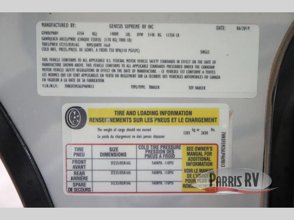 Genesis Supreme Vortex toy hauler 3016VF highlights: