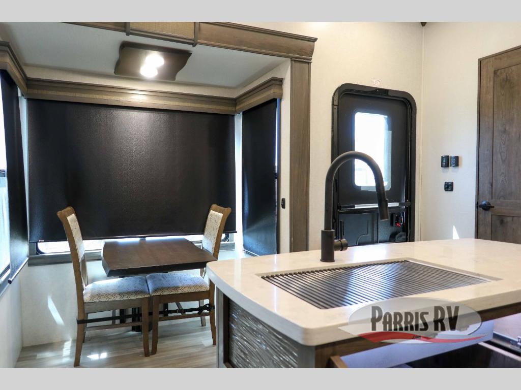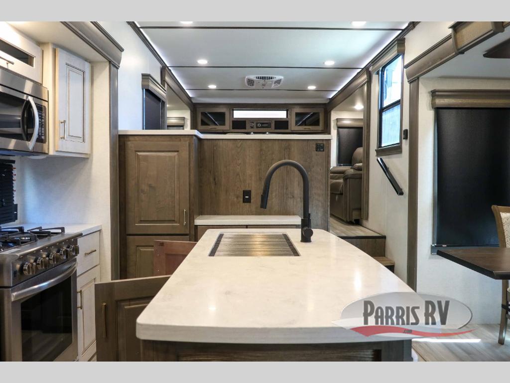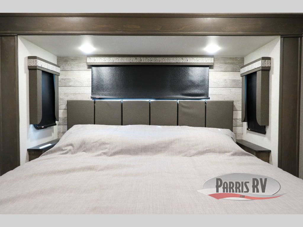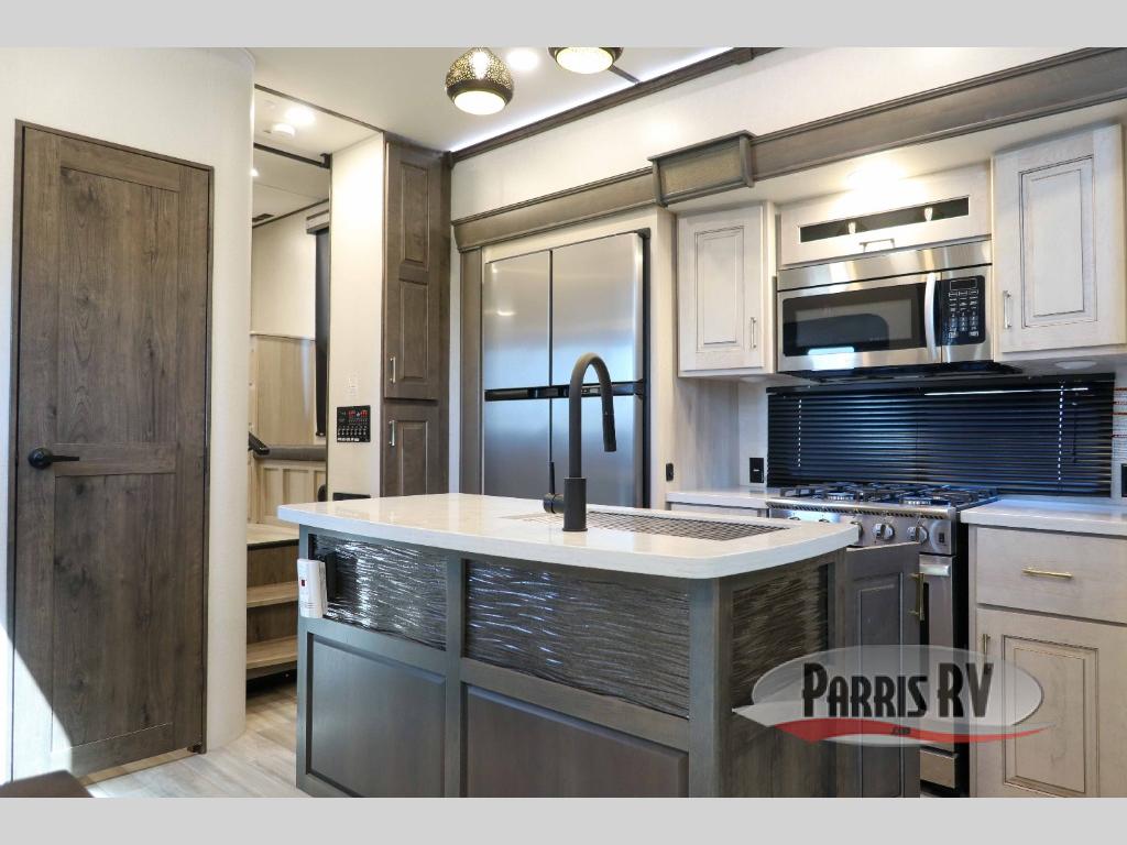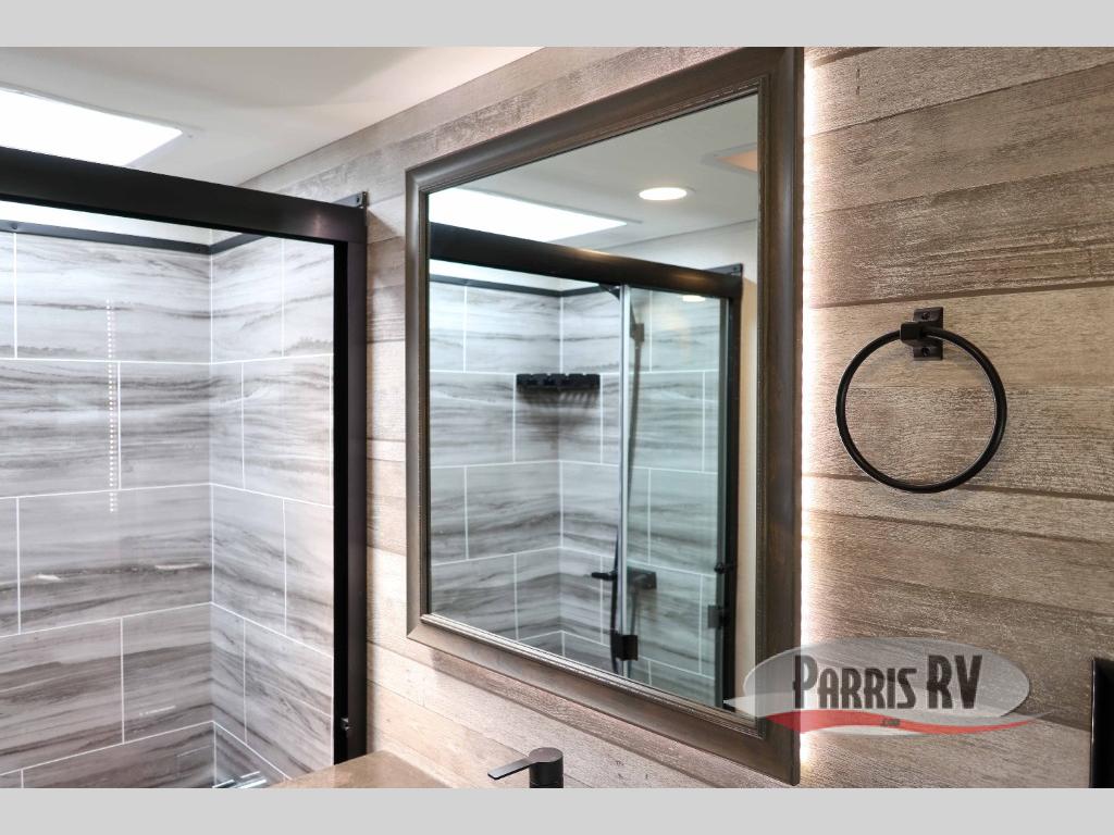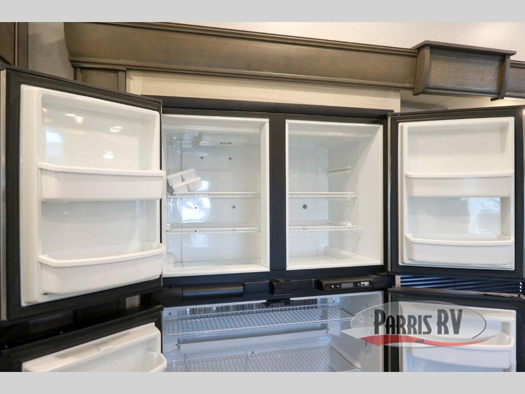 The Paradigm fifth wheel from Alliance RV is absolutely a dream to own because it combines high quality and luxury with features that you have specifically requested over the years! Some of the exterior customer-driven features are the Benchmark chassis, the G-range tires rated at 4,400 pounds, and the MorRyde CRE3000 suspension, and the Paradigm offers some of the industry's largest tank sizes at 98 gallons for fresh water and 106 gallons for gray water. The PVC roof covering will do an excellent job at protecting your RV from water intrusion, and it has increased solar reflectivity. You won't find any carpet in the Paradigm, and another great feature that has been reconstructed to meet the customer's needs is the flush-floor slide. The soft-close doors and drawers with magnetic catch are a high-end residential feature that isn't typically found on other RVs, and the excellent hidden storage capabilities of the Paradigm will surprise you when you find them.