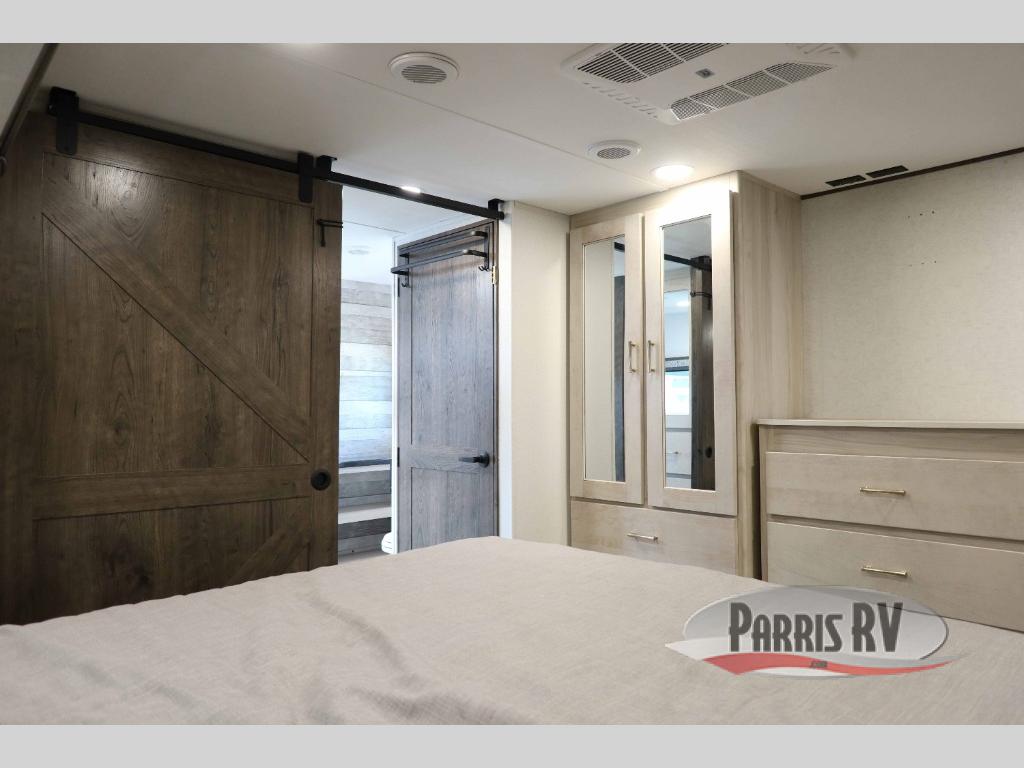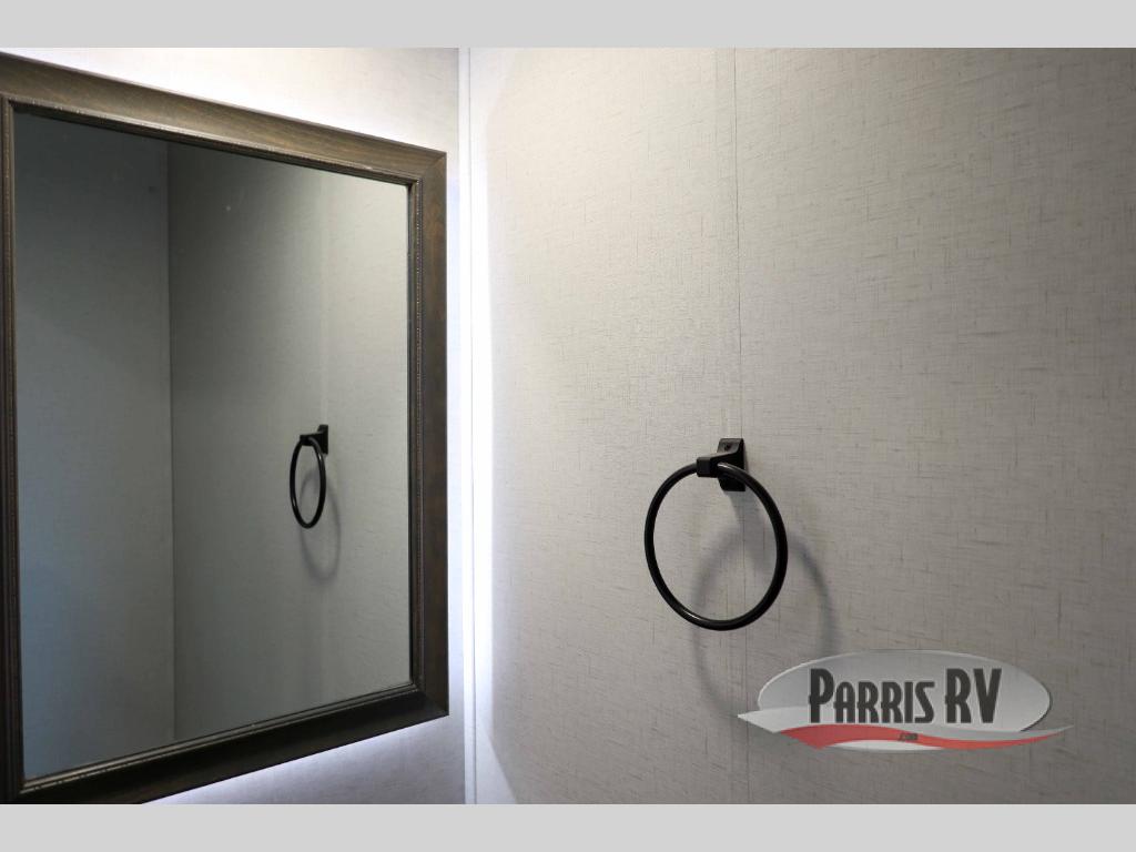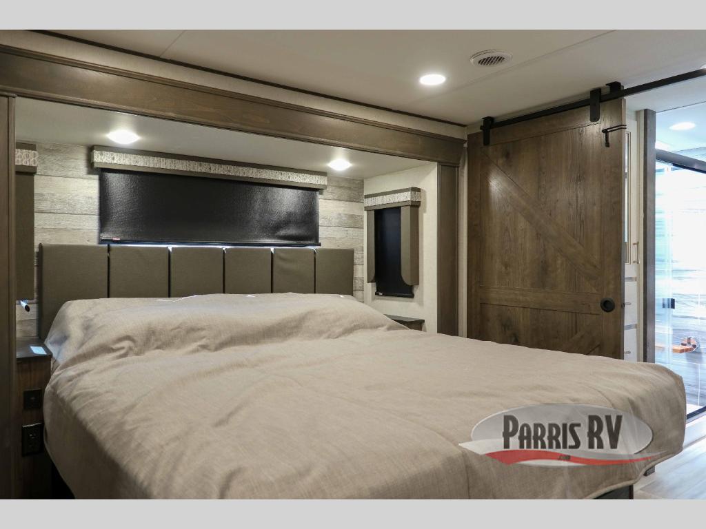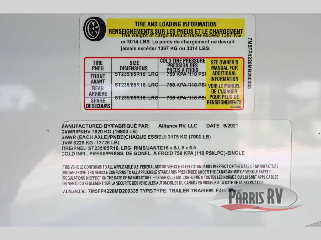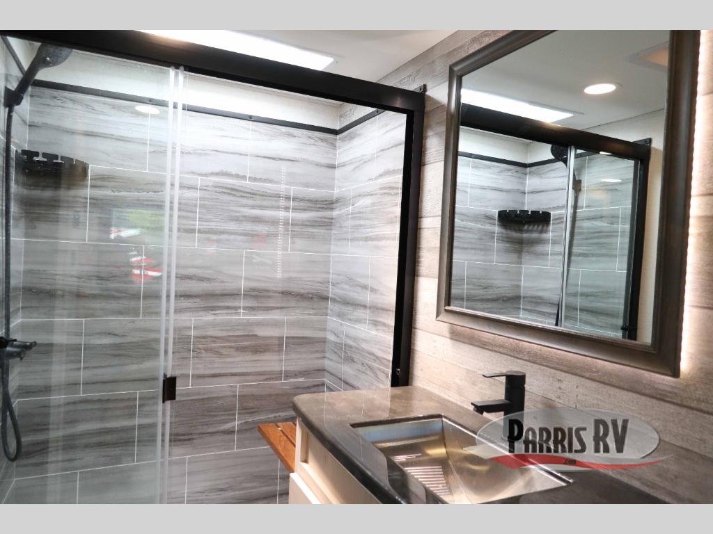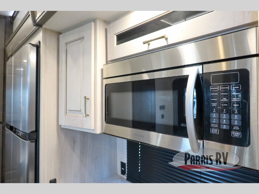 The Paradigm fifth wheel from Alliance RV is absolutely a dream to own because it combines high quality and luxury with features that you have specifically requested over the years! Some of the exterior customer-driven features are the Benchmark chassis, the G-range tires rated at 4,400 pounds, and the MorRyde CRE3000 suspension, and the Paradigm offers some of the industry's largest tank sizes at 98 gallons for fresh water and 106 gallons for gray water. The PVC roof covering will do an excellent job at protecting your RV from water intrusion, and it has increased solar reflectivity. You won't find any carpet in the Paradigm, and another great feature that has been reconstructed to meet the customer's needs is the flush-floor slide. The soft-close doors and drawers with magnetic catch are a high-end residential feature that isn't typically found on other RVs, and the excellent hidden storage capabilities of the Paradigm will surprise you when you find them.