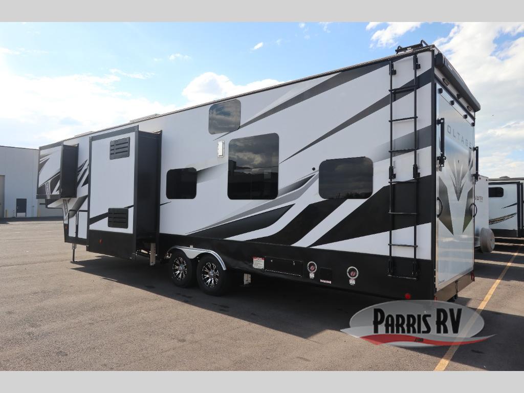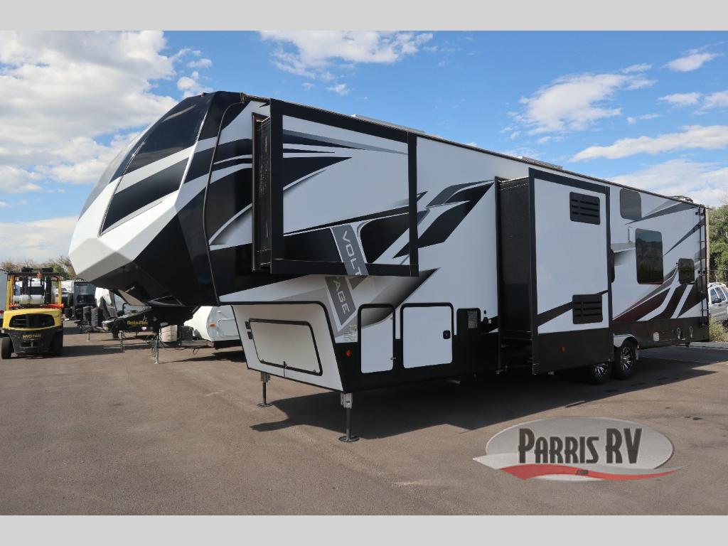 You will be extremely impressed by the amount of luxury found on the Dutchmen Voltage fifth wheel toy hauler! Some of the premium features that you will find on the Voltage are the Zero-Gravity ramp door that lets you access your toys with very little effort and the king-size bed which offers you extra space for sleeping comfortably. The Voltage also has industry-leading 7'-tall slides so that you can feel free to stretch your legs while inside. The ramp door patio system is certainly going to be an appealing factor because it provides you with an extra party space, and the dedicated heat ducts for the underbelly and the All-Weather Package with additional insulation will ensure that your Voltage is protected and prepared for all sorts of weather.