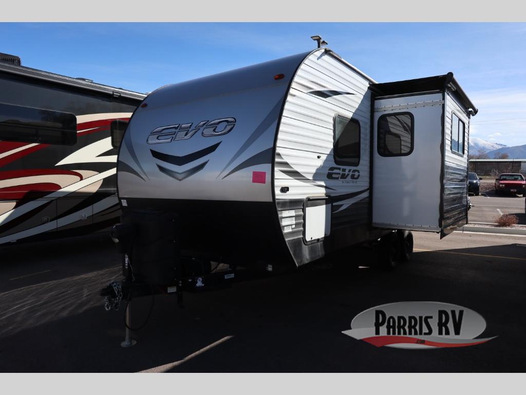 Take off with this EVO travel trailer hitched up behind you. Once you have reached your campsite, you will have a radius glass shower that you can rinse off in after a day at the lake, and you can take a nap on the RV queen bed or fold down the U-shaped dinette slide for some added sleeping space. And you will find storage throughout for your clothing, games and such. Outside, the pass-through storage lets you take those larger outdoor items that you might not like inside the trailer.