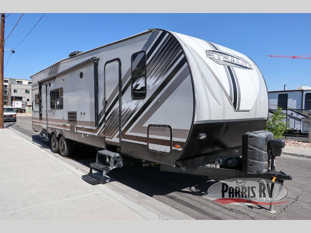 Each one of these Forest River Stealth toy haulers are built with a solid foundation and a 102" wide body construction! The 35 gallon fuel tank will keep your toys filled and ready to hit the trails, plus the black 1,200 lb. tie downs mounted to steel will keep them safe as you travel. These units are filled with luxury from the stainless steel appearance appliances to the pillow top mattress and USB charging ports throughout. The heated and enclosed underbelly and the one-piece seamless PVC roof will protect your unit through all weather conditions. There is also an outside shower with hot and cold water to keep the dirt outside where it belongs. Come find your favorite model today!