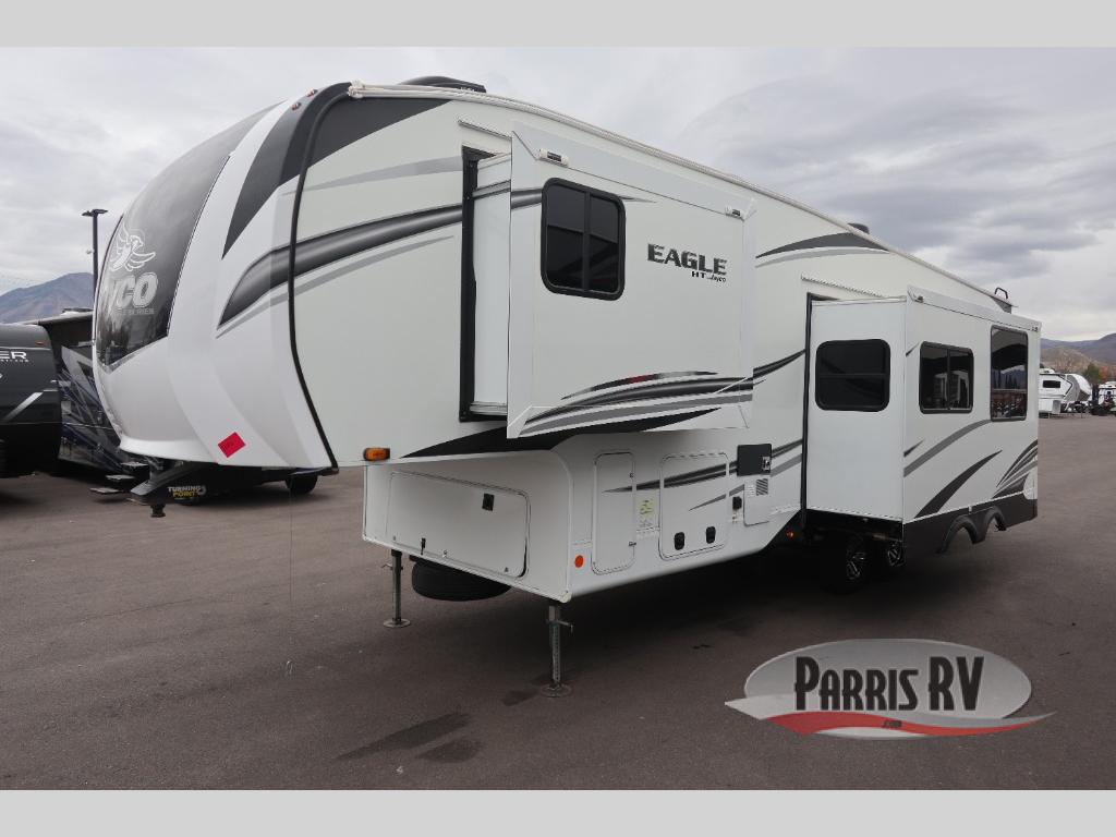 Make it a family vacation you won't forget in this half-ton-towable Eagle HT fifth wheel. The private bunkhouse includes four bunks plus unique stair-step storage drawers so that the kids can bring along their books and toys. You'll appreciate the added space in the main living area thanks to the large slide out, and you'll find the second slide out in the master suite up front. The chef of the family will love making breakfast on the outside kitchen, plus the indoor kitchen includes all the appliances needed if the weather is nasty outside. Whether you're playing a game at the booth dinette, watching your favorite movie on the LED HDTV, or you decided to choose the optional fireplace, you will truly enjoy your time in this fifth wheel.