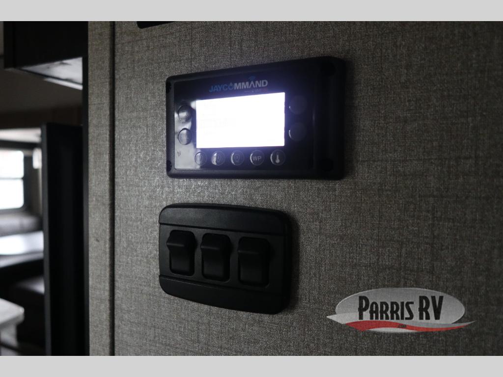 With each Jayco Eagle HT fifth wheel or travel trailer, you will enjoy all-season camping with the Climate Shield zero-degree tested weather protection that includes a fully enclosed and heated underbelly. The industry-exclusive HELIX Cooling System with a 15,000 BTU "Whisper Quiet" A/C system provides a quieter and more efficient system for your comfort. These models include the JAYCOMMAND Smart RV system powered by BMPRO which allows you to control your unit's functions right from your smartphone or tablet. Inside, you will enjoy the residential queen Serta mattress with under-bed storage, the bathroom skylight to allow natural light in, the stainless steel kitchen sink, and dual USB charging ports in the kitchen and bedroom so that you can keep your gadgets charged and ready to go.