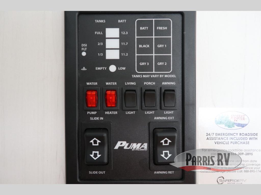 The Palomino Puma Ultra Lite travel trailers and toy haulers are just what you are looking for! These units provide you with great fun without causing strain as you travel. The effortless towing is what will draw you in because it will allow you to use your crossover vehicle or smaller SUV. The exterior has an Alpha Superflex roof for many years of durability, a Darco wrapped underbelly for protection during travels, rain gutters with large down spouts for preventing water build-up, and radius baggage doors for your gear. The kitchen has a decorative backsplash and spice rack for a taste of home, and the USB charging ports will make it easy to power your phones. An exterior electric awning will protect you from rain or too much sun exposure, and the Puma Ultra Lite has also been prepped for Wi-Fi, solar power, and a back-up camera.