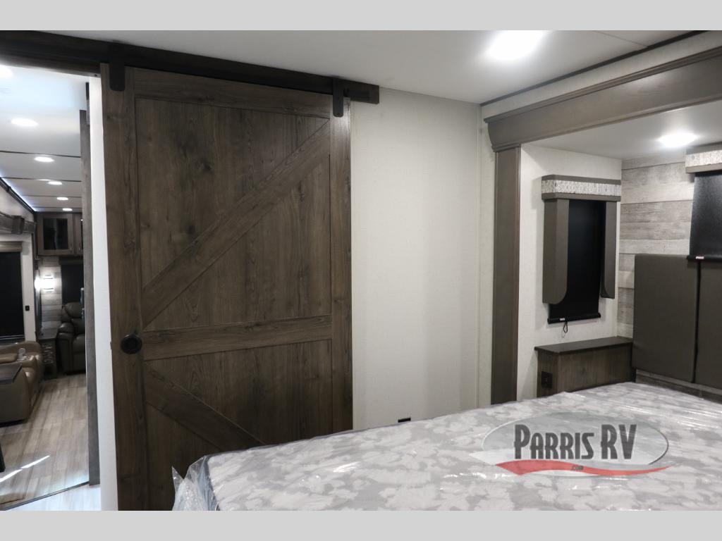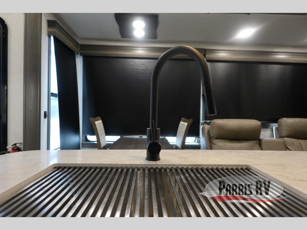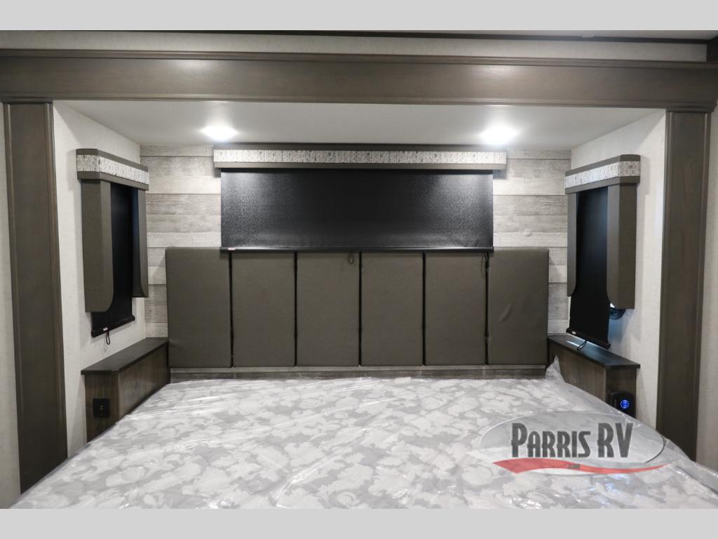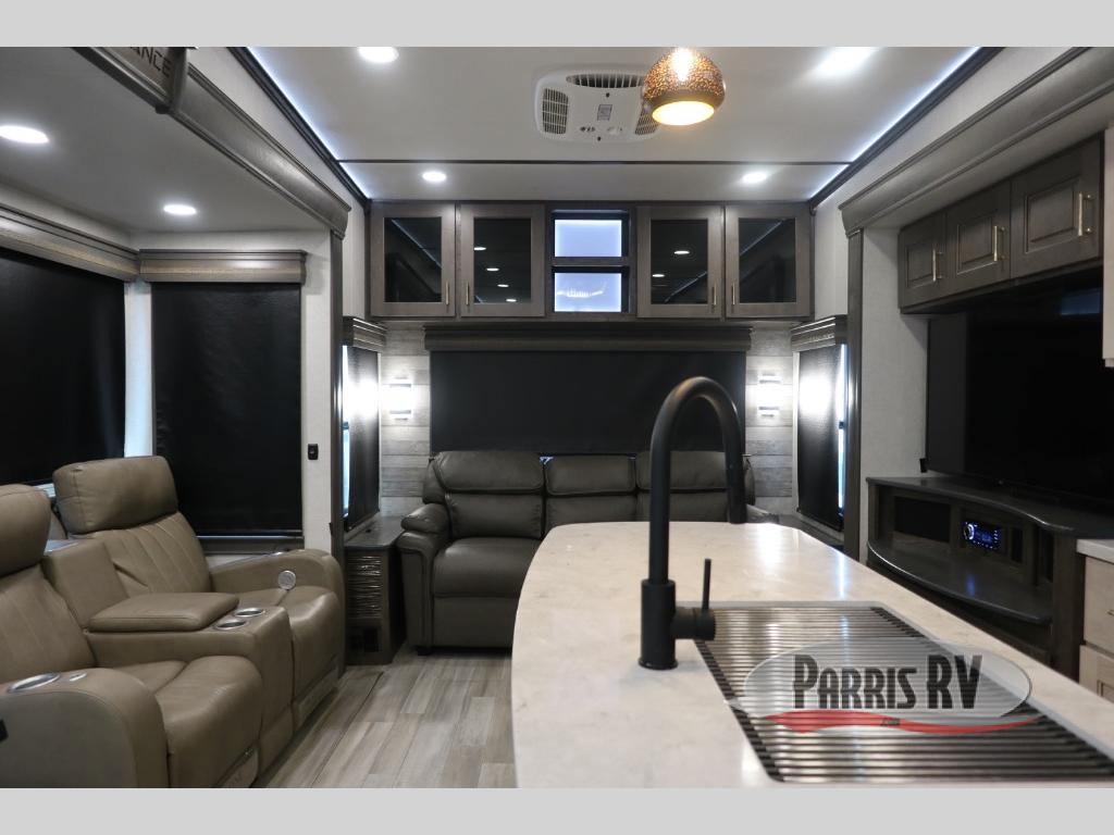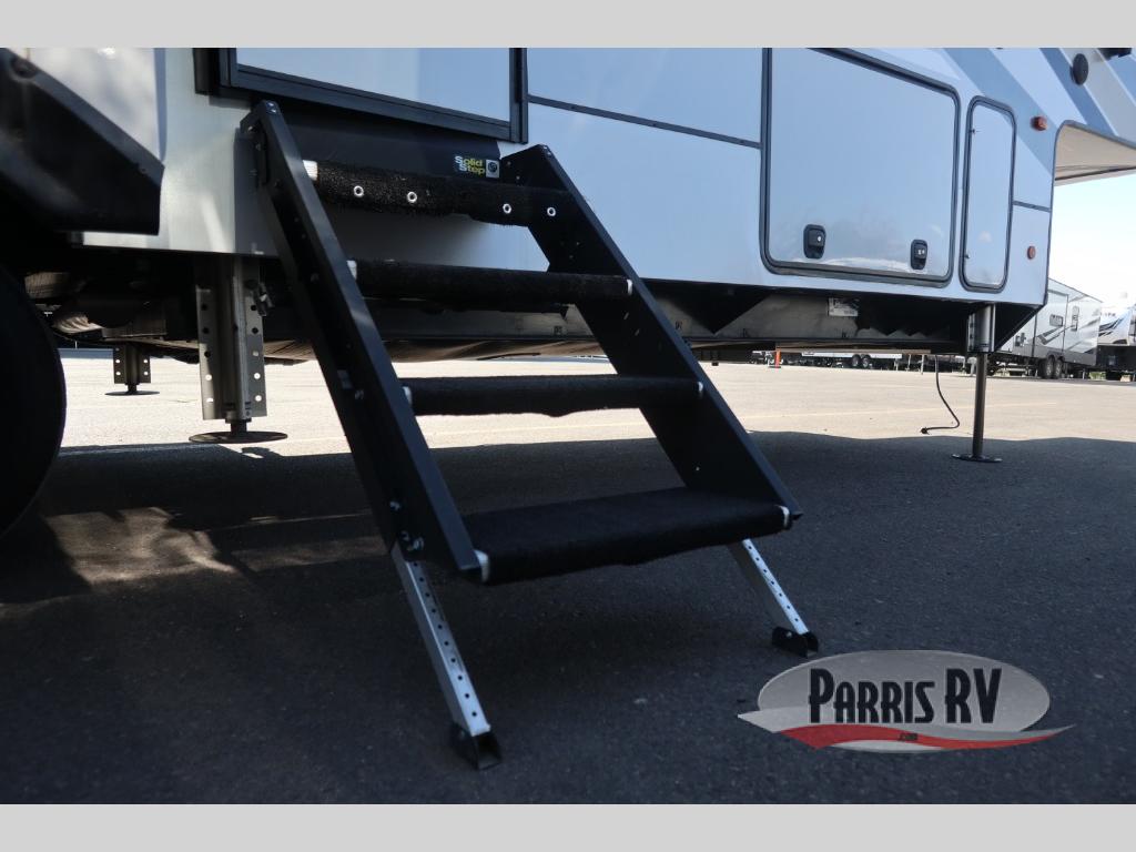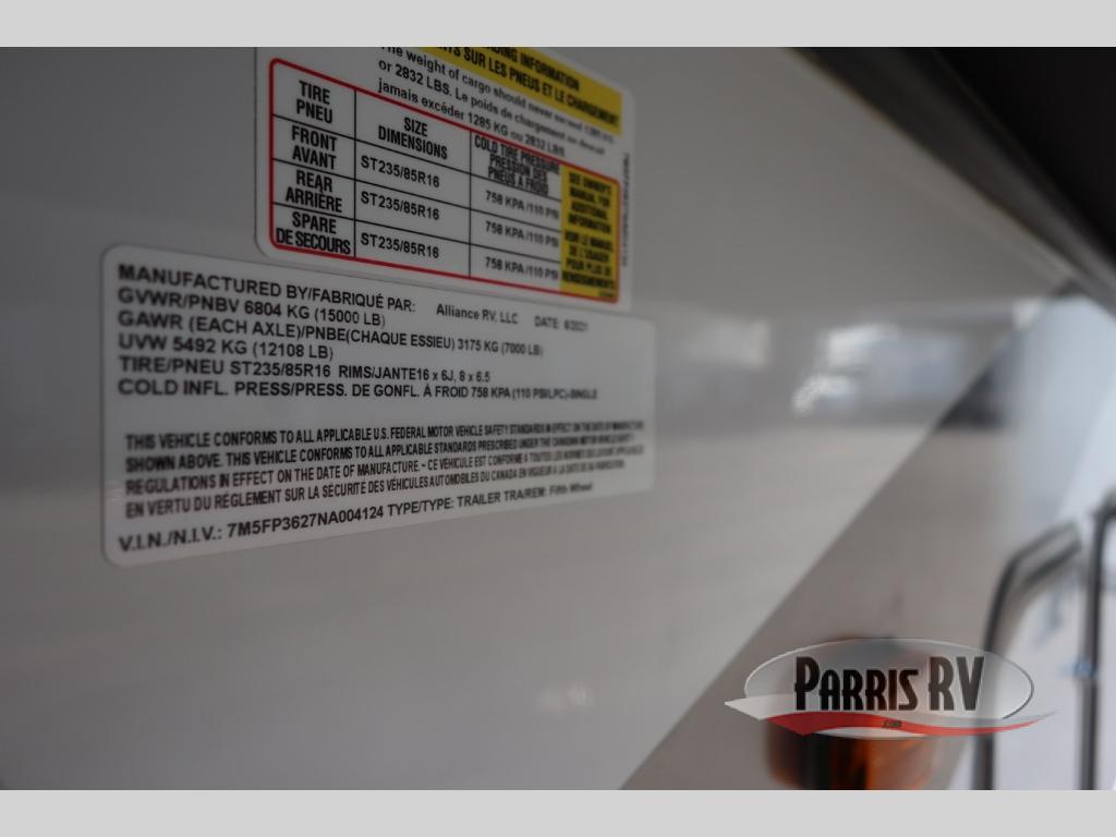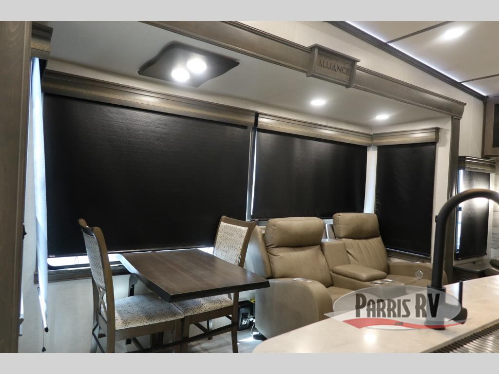 With any Paradigm fifth wheel by Alliance RV, you will experience the next generation advanced frame technology with heavy duty performance running gear. The Benchmark chassis features solid steel 10" l-beam main rails with a 2" torsion tube welded where the running gear attaches, drop frame storage area, flush upper deck design, reinforced goose neck area and a Rota-Flex pin box. The six-point hydraulic auto leveling is faster, stronger and quieter allowing you to enjoy more time away, and the PVC roof is more puncture resistant, ultra bright white and more solar reflective to help keep your fifth wheel cool. The triple 13,500 BTU A/Cs are ultra quiet, independently controlled direct flow A/C units that maximize cooling capacity, plus the 40,000 BTU furnace has flex ducts connected to formed ducts in the floor, and there are dedicated heat vents into the basement and underbelly to keep the tanks and your gear cozy warm during the cooler seasons. Choose luxury, choose convenience, choose to own the best, a Paradigm!
