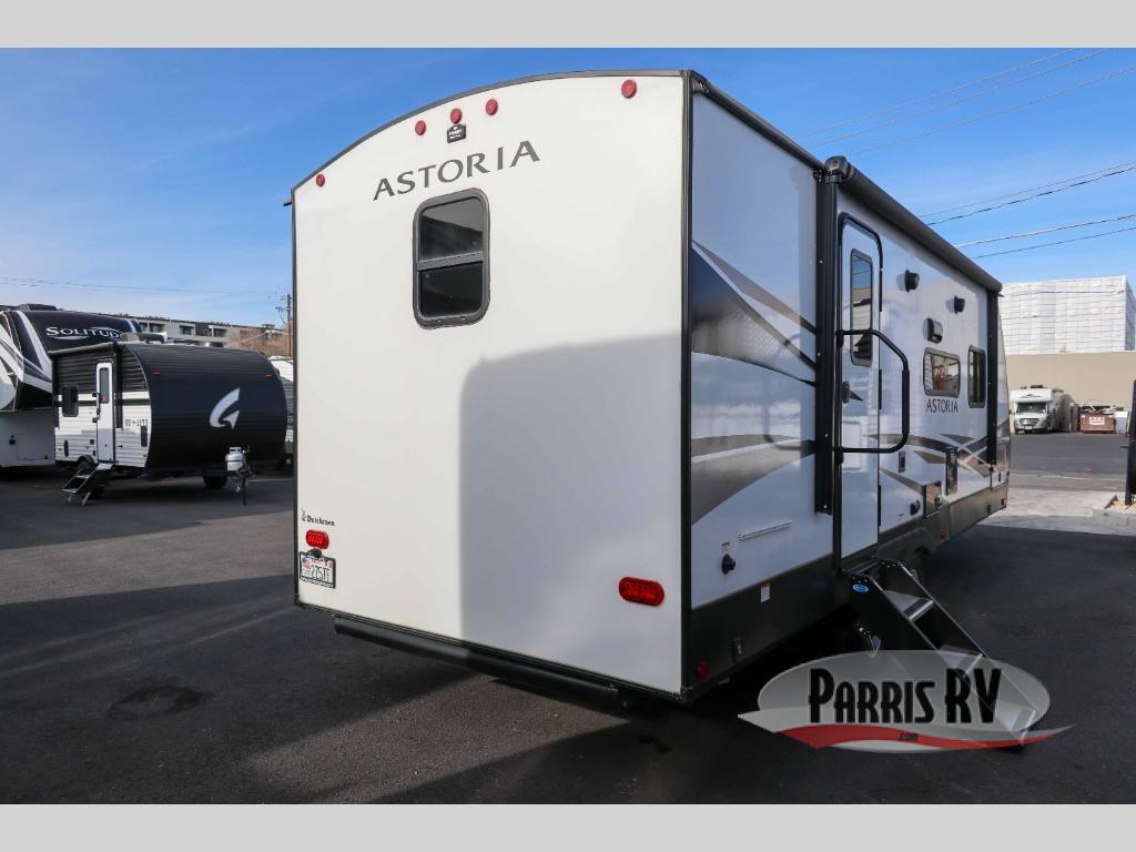 Each one of these Dutchmen RV Astoria fifth wheels and travel trailers offer highly visible, value-driven standard features and a sturdy construction with a fiberglass exterior! Dark-tinted safety glass windows offer privacy and a sleek design. You can store your outdoor gear in the pass-through storage areas and the slam latch baggage doors on the fifth wheels offer even more security while you travel. Their modern interior décor includes acrylic backsplash and stainless steel appliances which will be easy to clean. HyperDeck flooring will also be easy to clean, as well as hold up through each and every adventure. Don't waste anymore time, come find your perfect model today!