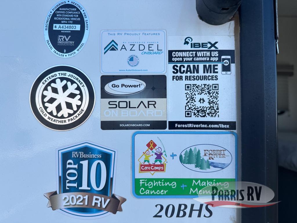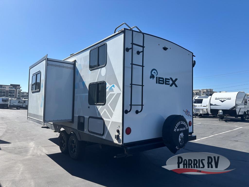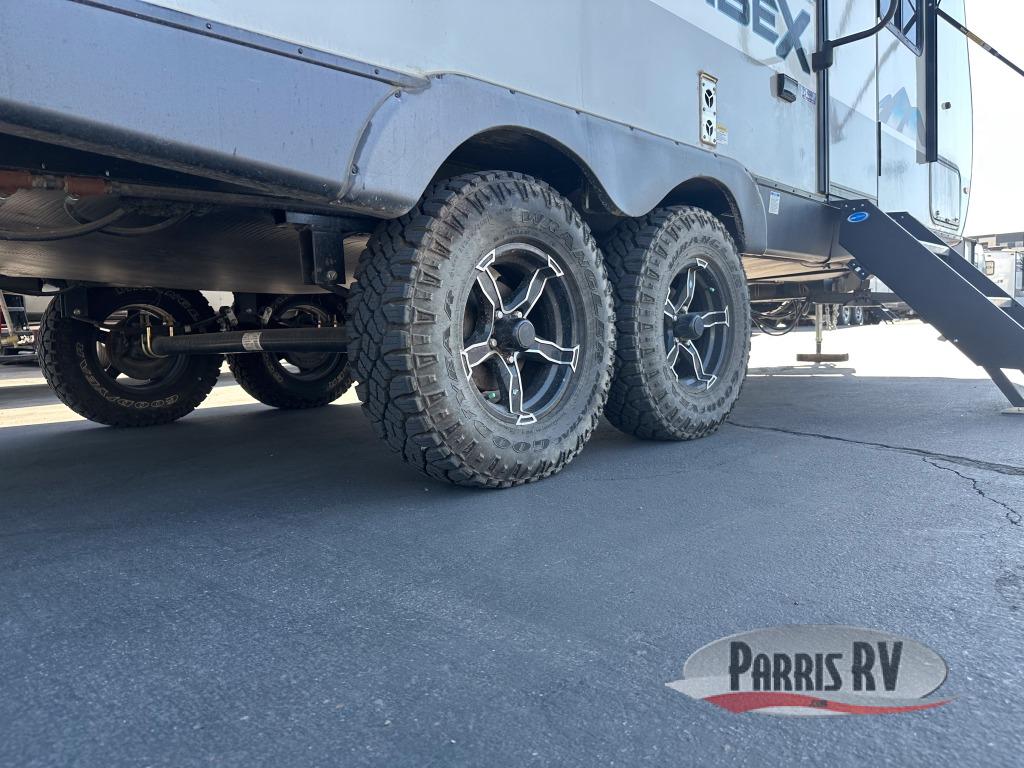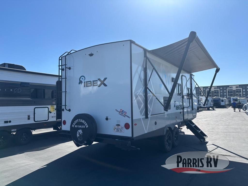 With any IBEX travel trailer or toy hauler by Forest River, the interior offers stainless steel appliances for style, seamless countertops for durability and easy care, a largest-in-class refrigerator for more cold storage, and a central vacuum system to easily clean up after a fun, messy day. The PVC roof, the Azdel construction, and the Cold Weather package with a heated and enclosed underbelly, tank pad heaters and an enclosed termination system provides solid construction plus allows you to travel during any season. And the all terrain tires and increased ground clearance allow you to find the perfect spot to setup camp!