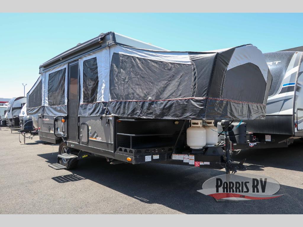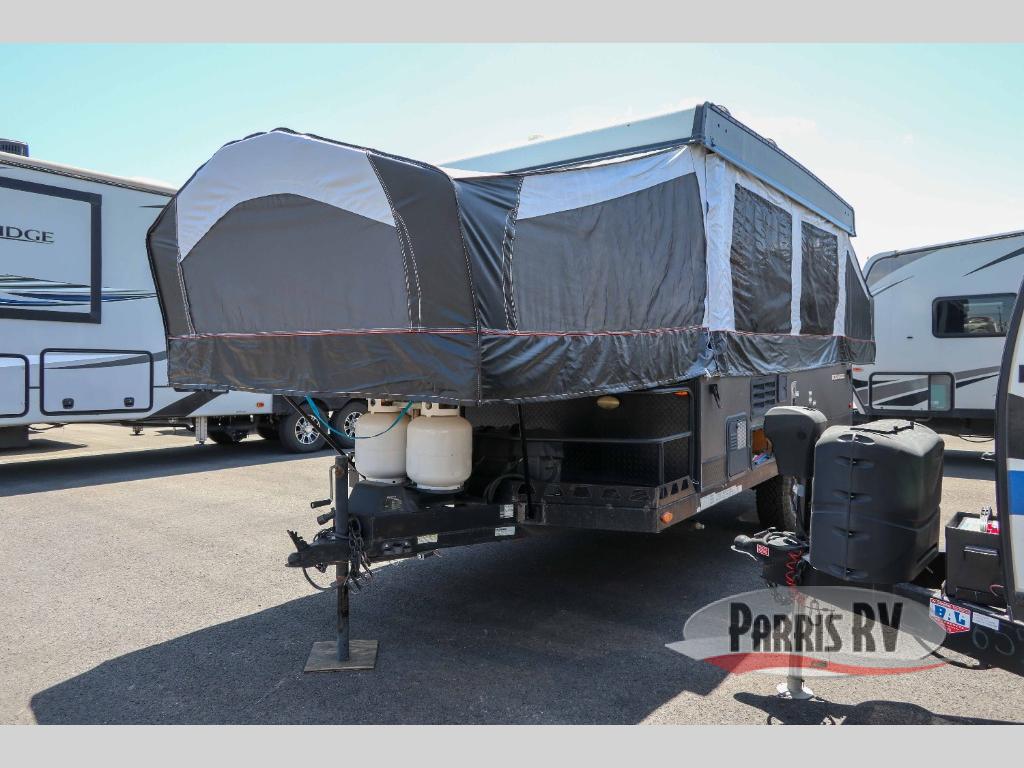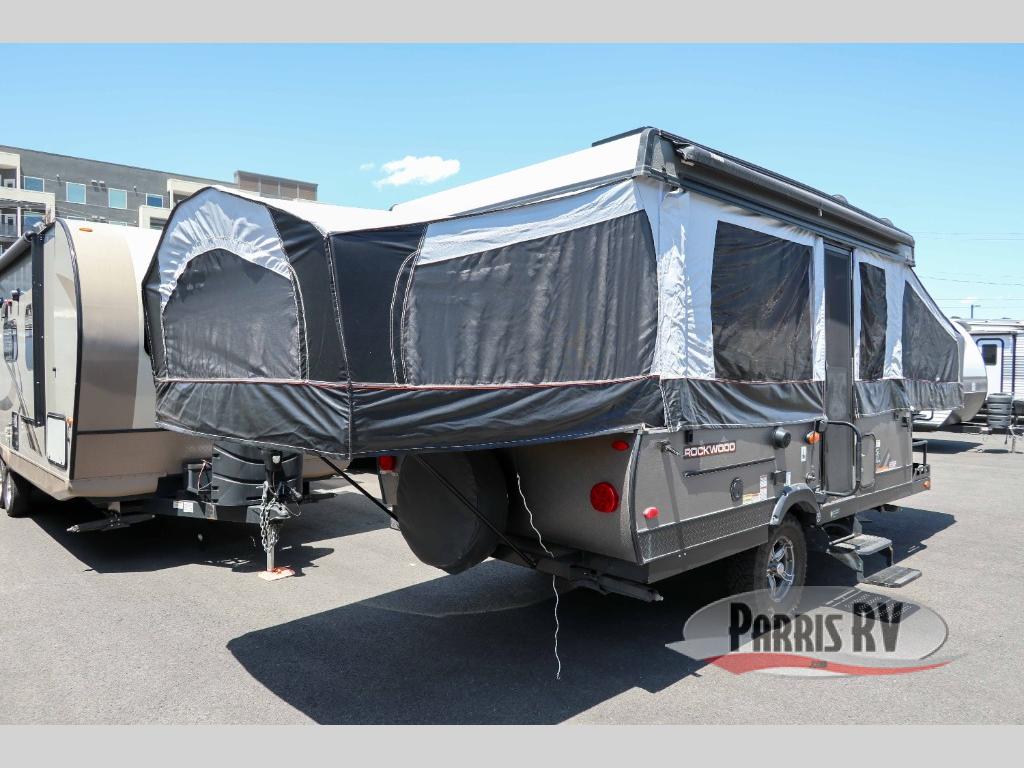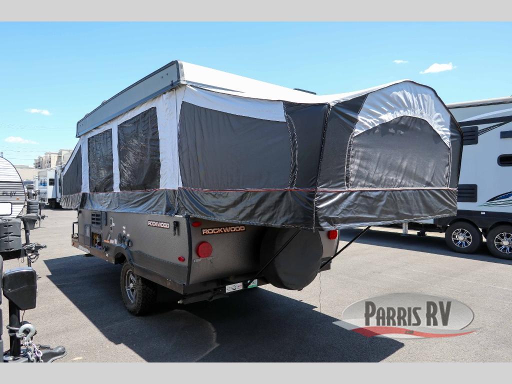 With any Rockwood Extreme Sports Package folding pop-up camper, you will have confidence in the construction from the powder coated tubular steel frame, the three stage double arm lifter post, the fiberglass vacuum bonded radius roof with no center seam, the five-piece Vinolon Supreme tenting, and the full perimeter aluminum bed frames. The ESP Extreme package provides features such as aluminum wheels with 15" Mud Rover tires for better ground-clearance to reach places most RVs wouldn't try, a 100W roof mount solar panel with 1000W inverter, ProRac permanent crossbars, and a power roof lift, plus more. And the interior offers conveniences and comforts while exploring the boundaries. Make your selection today!
