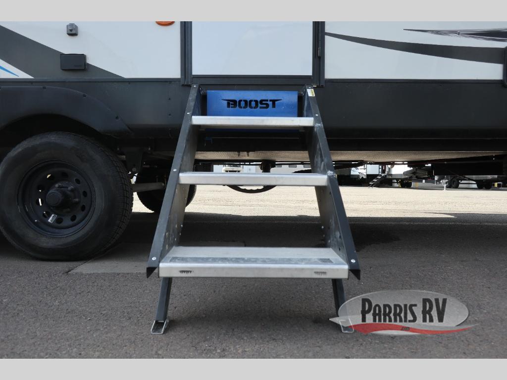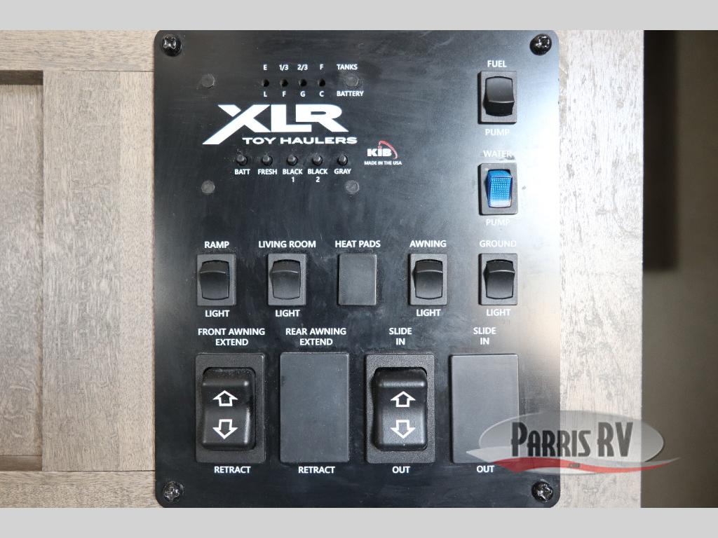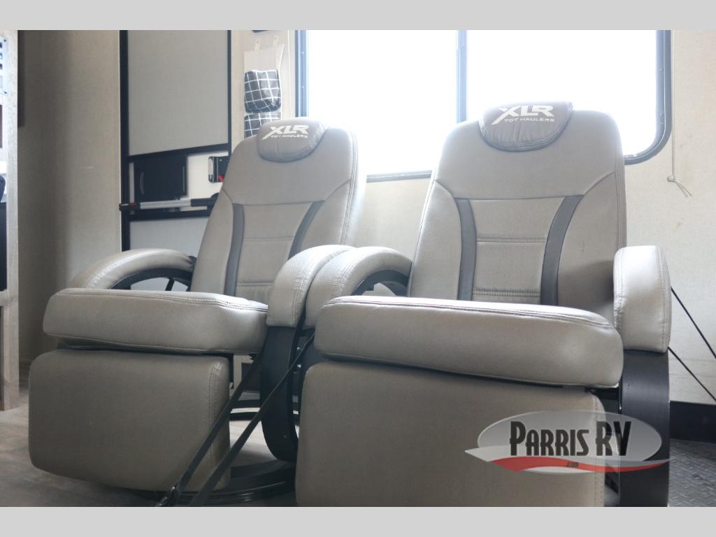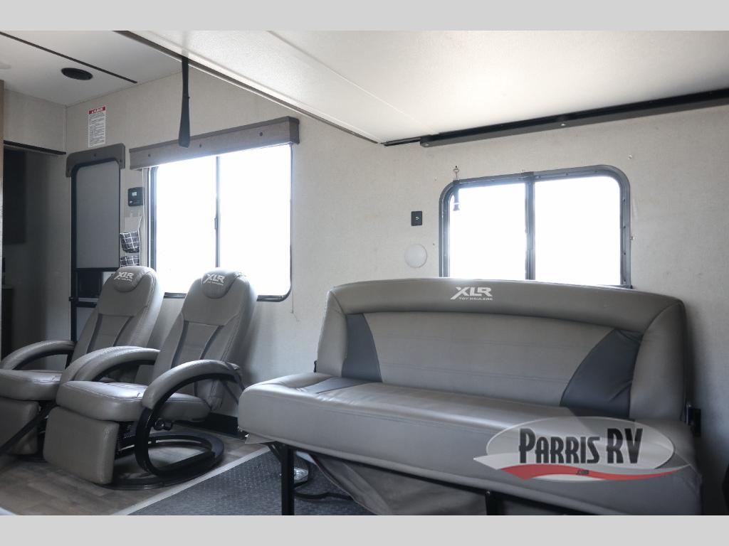 Boost into action camping with one of these Forest River XLR Boost fifth wheel toy haulers or travel trailer toy haulers! The 102" wide body not only provides ample walking around space, but also packs in all of the luxurious features to make your trips great. A seamless PVC roof system prevents water from leaking inside, and the moisture barrier floor enclosure and the oil and gas resistant residential linoleum throughout keeps your unit from falling apart. You can easily load and unload your toys with the laminated aluminum framed weather proof ramp door. Keep the dirt outside where it belongs with the outside hot/cold shower box and enjoy the perfect view of your beautiful surroundings even indoors through the large panoramic windows. Come find the model that best fits your needs today!
