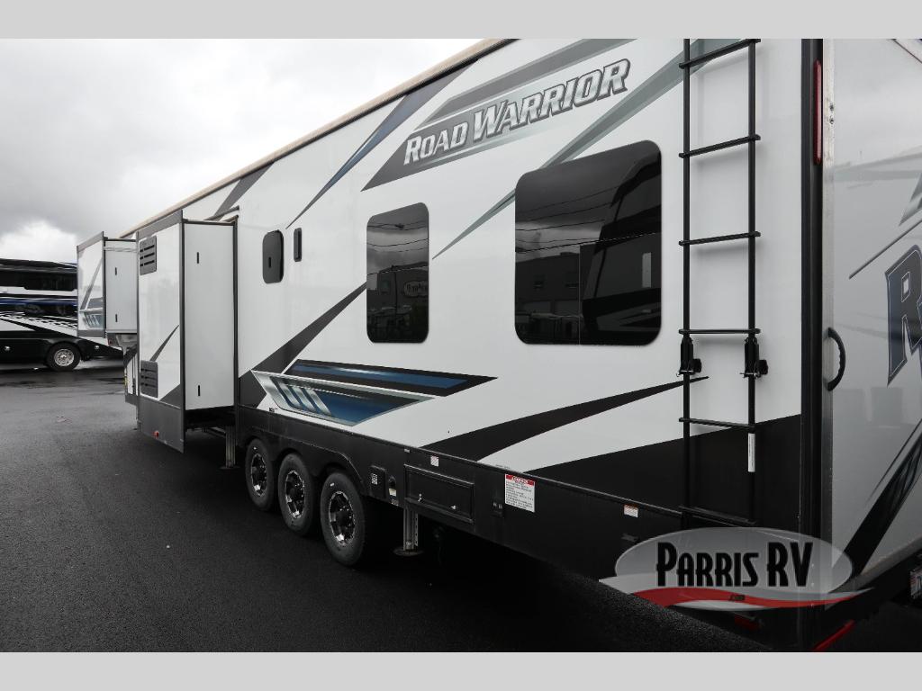 With any Road Warrior toy hauler fifth wheel by Heartland, there is a heated, enclosed underbelly for four seasons of travel, MORryde 3000 suspension for a better tow, a Nev-R-Adjust brake package, hydraulic 6-point level up for easy setup, and a 100-watt solar panel with inverter prep for off-grid camping. The garage allows you to safety take your toys with you thanks to the professionally installed tie downs, the cold crack resistant flooring is durable, and the residential style furniture with USB station is comfortable, stylish and allows you to keep your electronics ready for the next adventure. Choose one of these luxury crossovers and launch your adventurous side on its next journey!