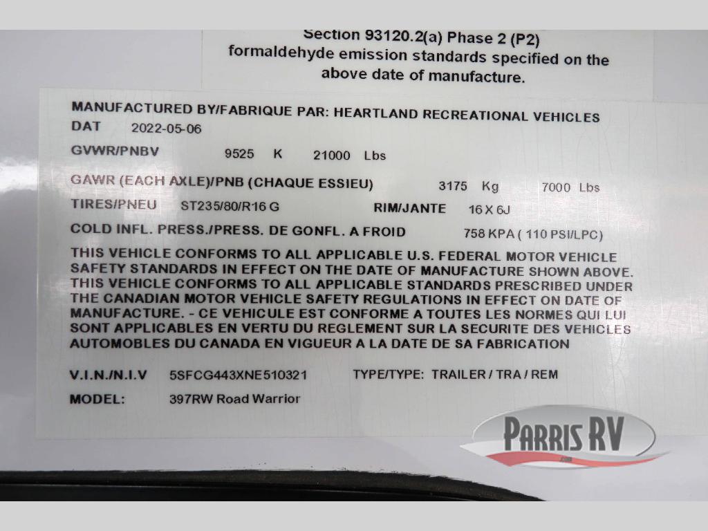 Used 2022 Heartland Road Warrior 397