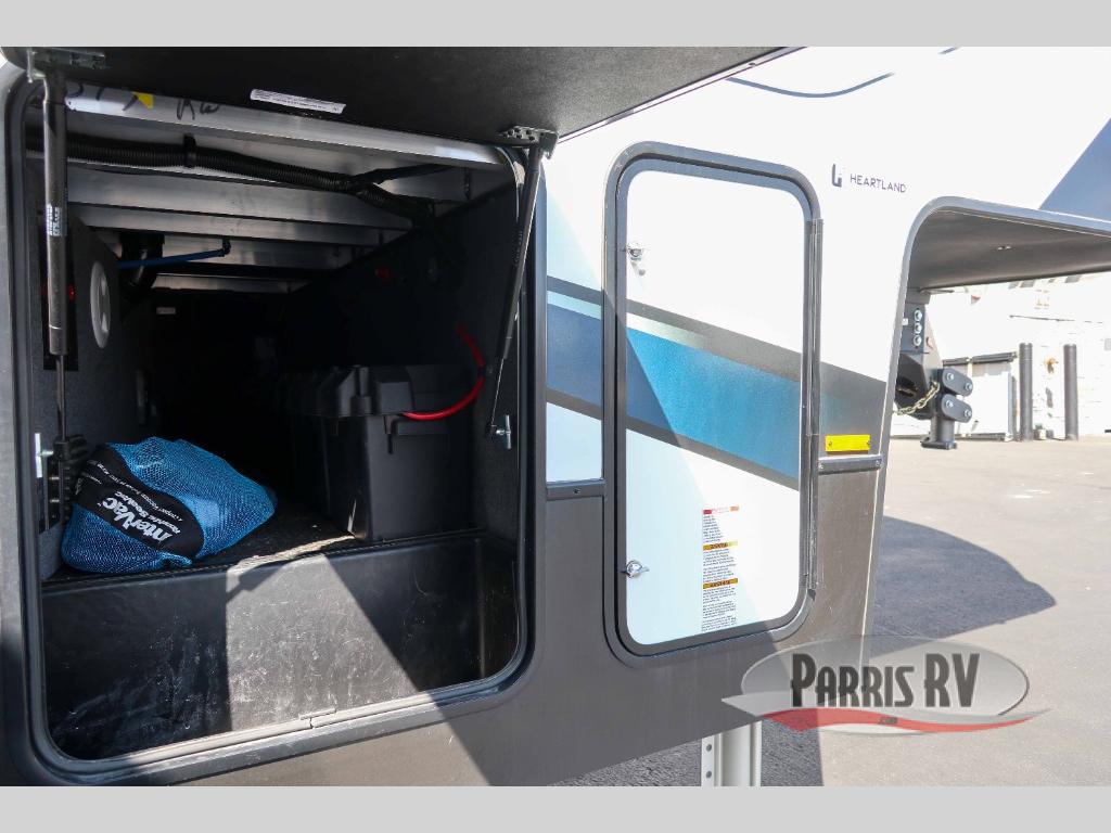 With any Road Warrior toy hauler fifth wheel by Heartland, there is a heated, enclosed underbelly for four seasons of travel, MORryde 3000 suspension for a better tow, a Nev-R-Adjust brake package, hydraulic 6-point level up for easy setup, and a 100-watt solar panel with inverter prep for off-grid camping. The garage allows you to safety take your toys with you thanks to the professionally installed tie downs, the cold crack resistant flooring is durable, and the residential style furniture with USB station is comfortable, stylish and allows you to keep your electronics ready for the next adventure. Choose one of these luxury crossovers and launch your adventurous side on its next journey!