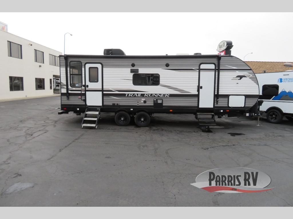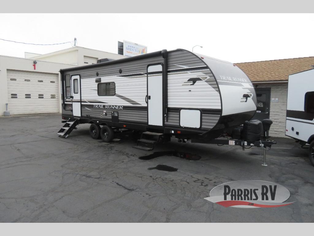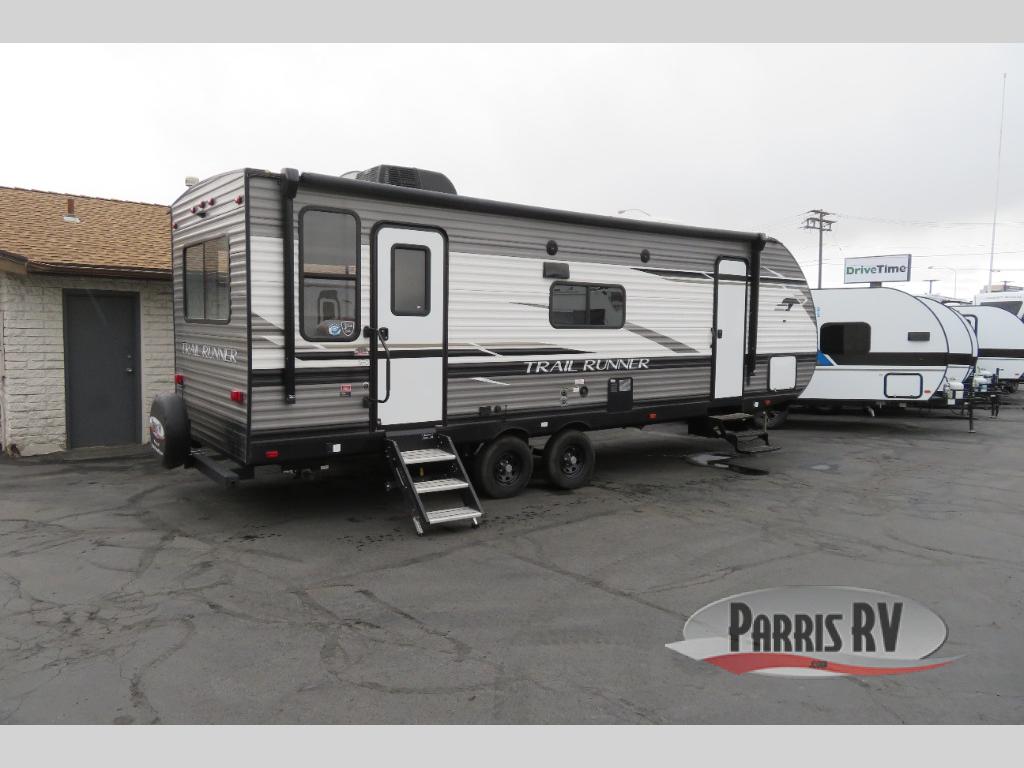Paradise awaits at the end of the trail with one of these Heartland Trail Runner travel trailers! Experience better wind and water deflection, added strength, and a reduction of tongue weight with the hybrid aluminum front profile that has an aerodynamic radius front cage. A cambered structural steel I-beam frame holds them together and a heated enclosed underbelly protects the units vitals. There is an industry leading mammoth storage space of 57 cu. ft. pass-through storage so you can bring all of your outdoor gear with you. Roller shades in the main living area, woven flooring in all slide rooms, master suites with CPAP storage, and upgraded pressed counters give you the at-home feel you desire. Come find the perfect model for you today!