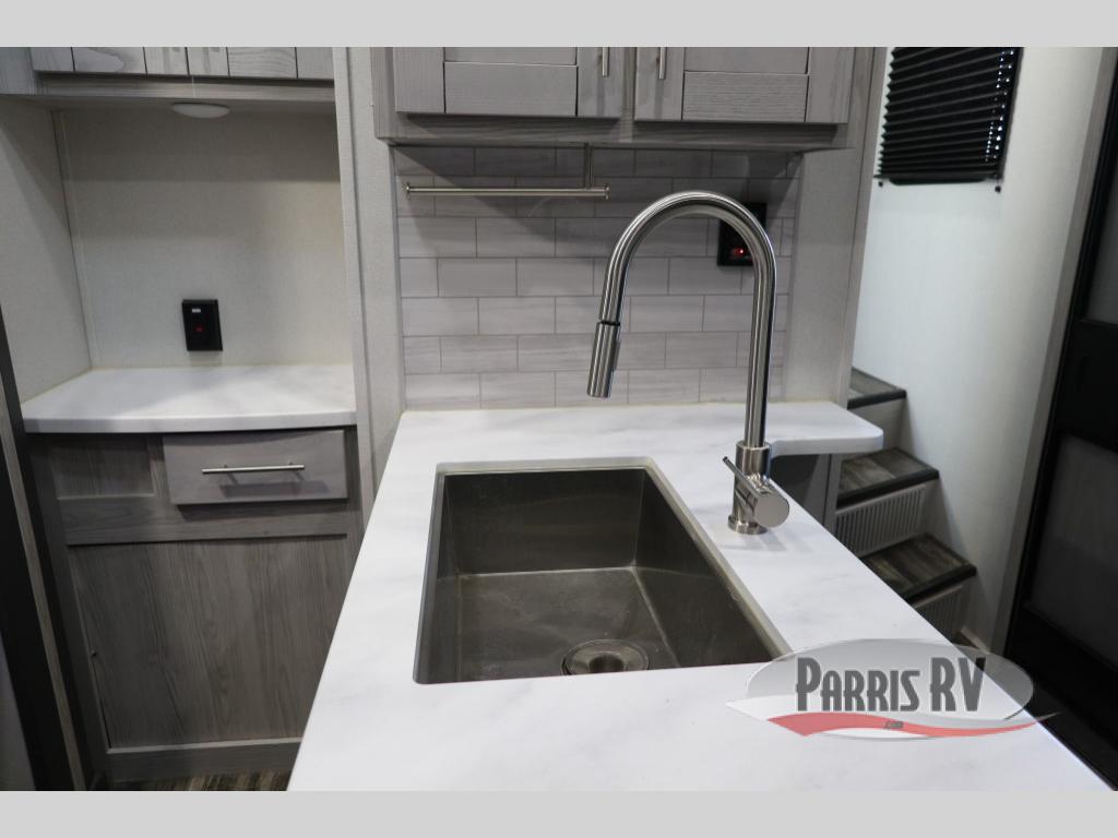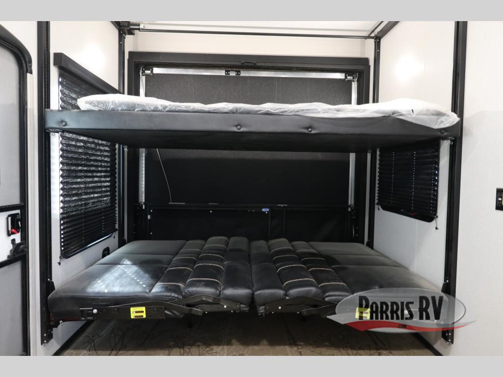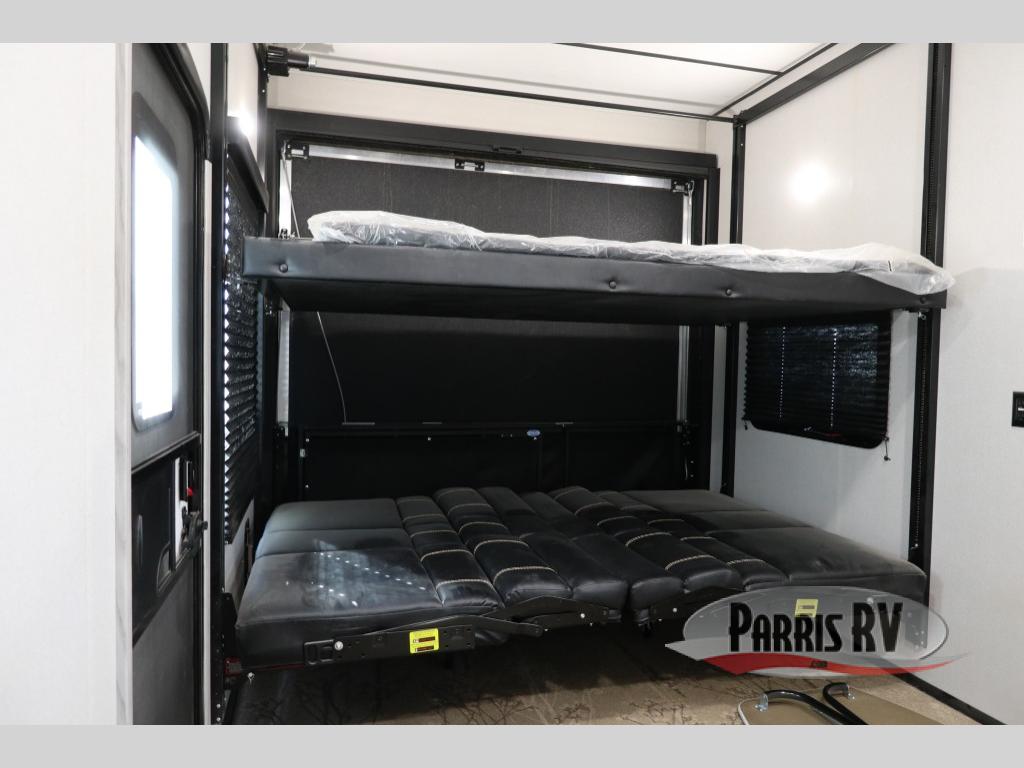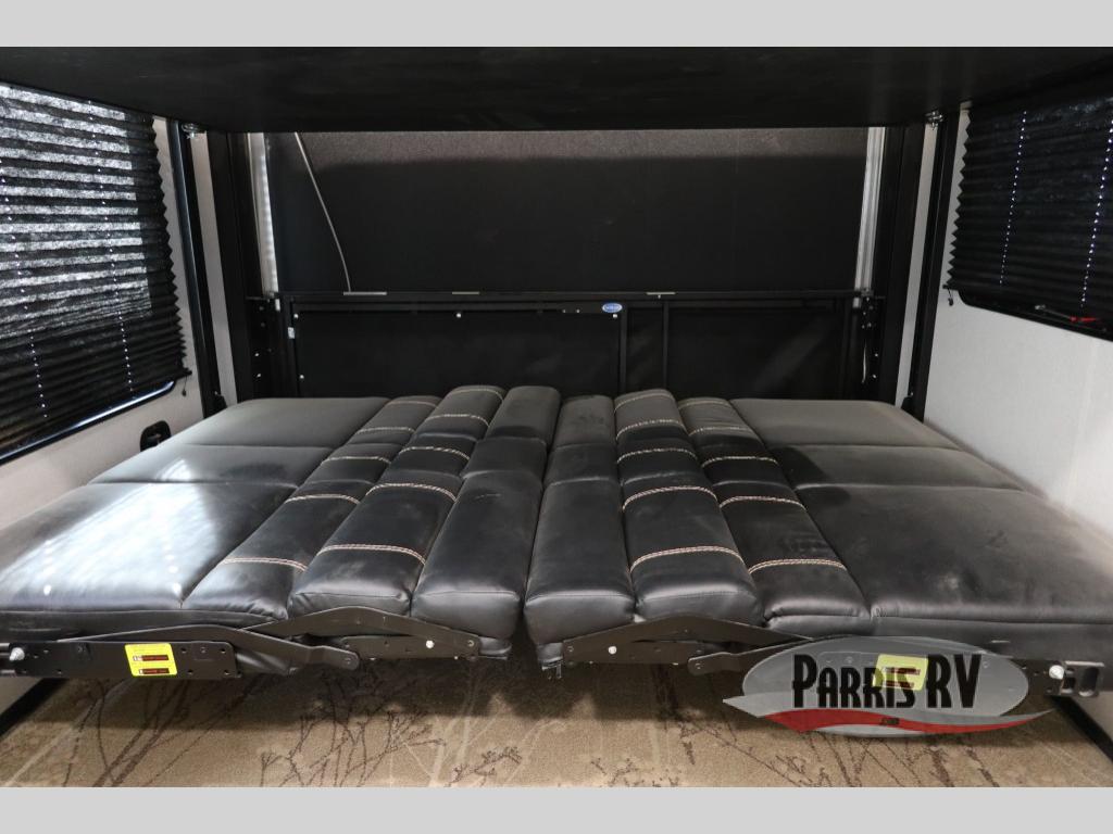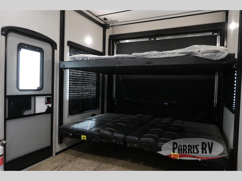 With any Fuzion Impact Edition toy hauler, the robust construction gives you years of enjoyment and the unexpected conveniences and technology allow you to enjoy the indoors while exploring outdoors on a budget! Some standout features include the CNC sidewalls that are precision-routed to ensure the best possible seal around the windows, doors and slide boxes, the blade high-performance air flow system delivering an average of 20% more cooling power, and the 5k Interlock tie downs rated up to 5,000 lbs. each. The SolarFlex 200 delivers affordable, high quality solar energy and you can choose an option to upgrade if you like. While indoors, you will appreciate the full-extension ball bearing drawer guides, the pressed countertops, the hardwood cabinetry, the bedside outlets/USB to keep your electronics charged, and so much more providing comfort and convivence. Choose an easy-to-tow, value-minded and impactful Fuzion Impact Edition toy hauler travel trailer or toy hauler fifth wheel today!